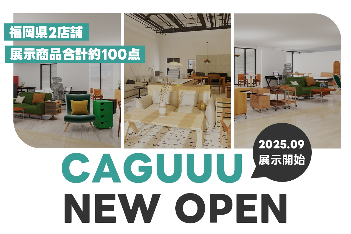 2025年9月より、福岡県の家具店2店舗にてCAGUUUの家具展示・販売を開始いたしました。オンラインでは伝わりにくい質感や高い品質を、実際に見て・触れて体感していただける場となっております。