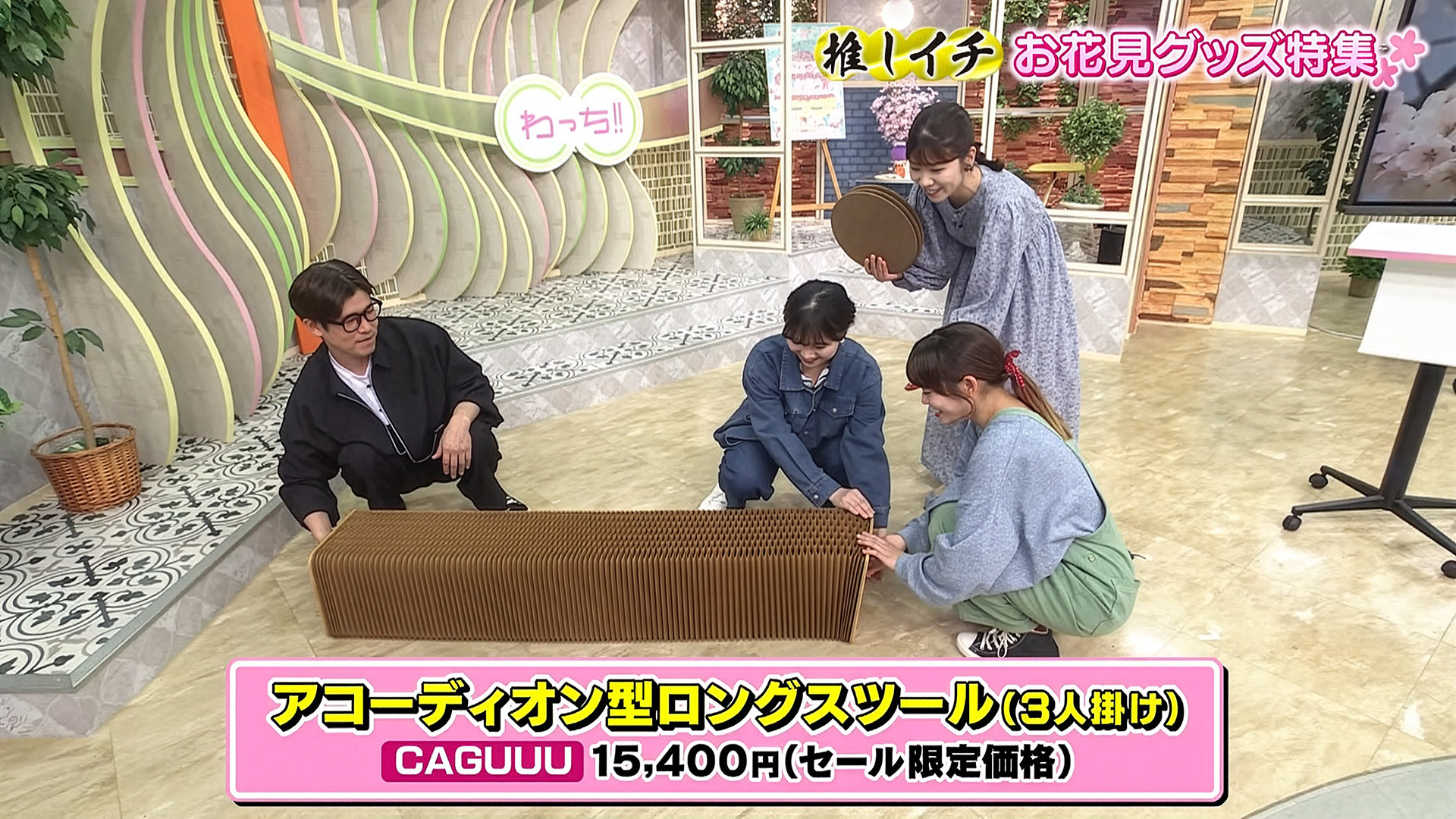 ・内容:「推しイチ お花見グッズ特集」というコーナーにて、弊社商品がお花見に便利なアイテムとして紹介されました。自由に持ち運びができ、どこでも椅子やテーブルとして使用できるのが特徴です。※ご使用の際は、平らで安定した場所でご利用ください。