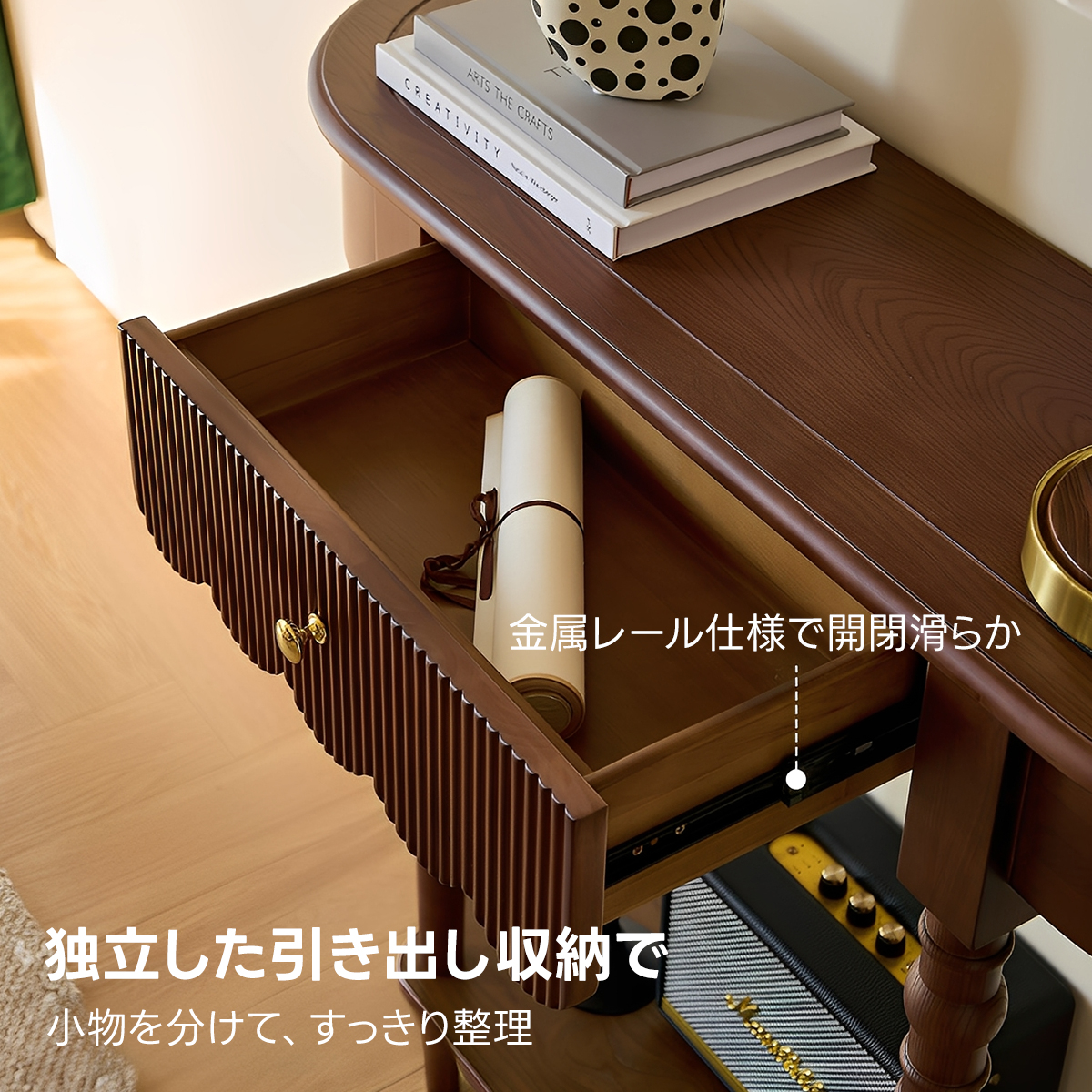 鍵や郵便物の一時置き場として玄関で使ったり、リビングでディスプレイを楽しむために置いたり、寝室でノートPCを開ける小さな作業台として使ったり。用途に応じた幅・奥行き・高さのバリエーションを揃え、スリムな形状で狭い場所にも置きやすいタイプや、収納スペースを備えたタイプなど、暮らしに“ちょうどよく”寄り添う一台が選べます。