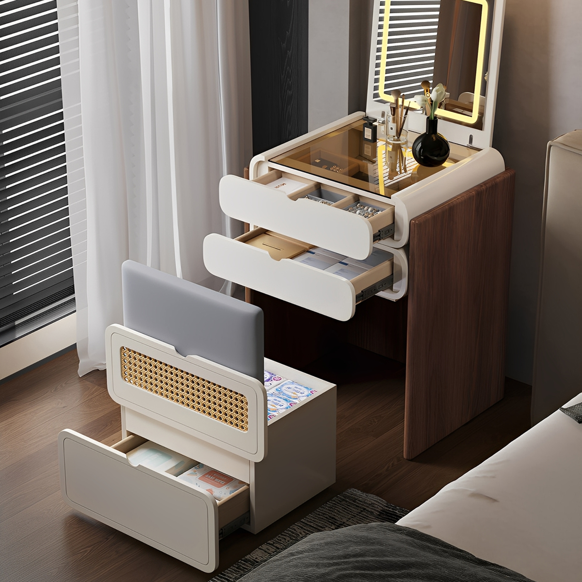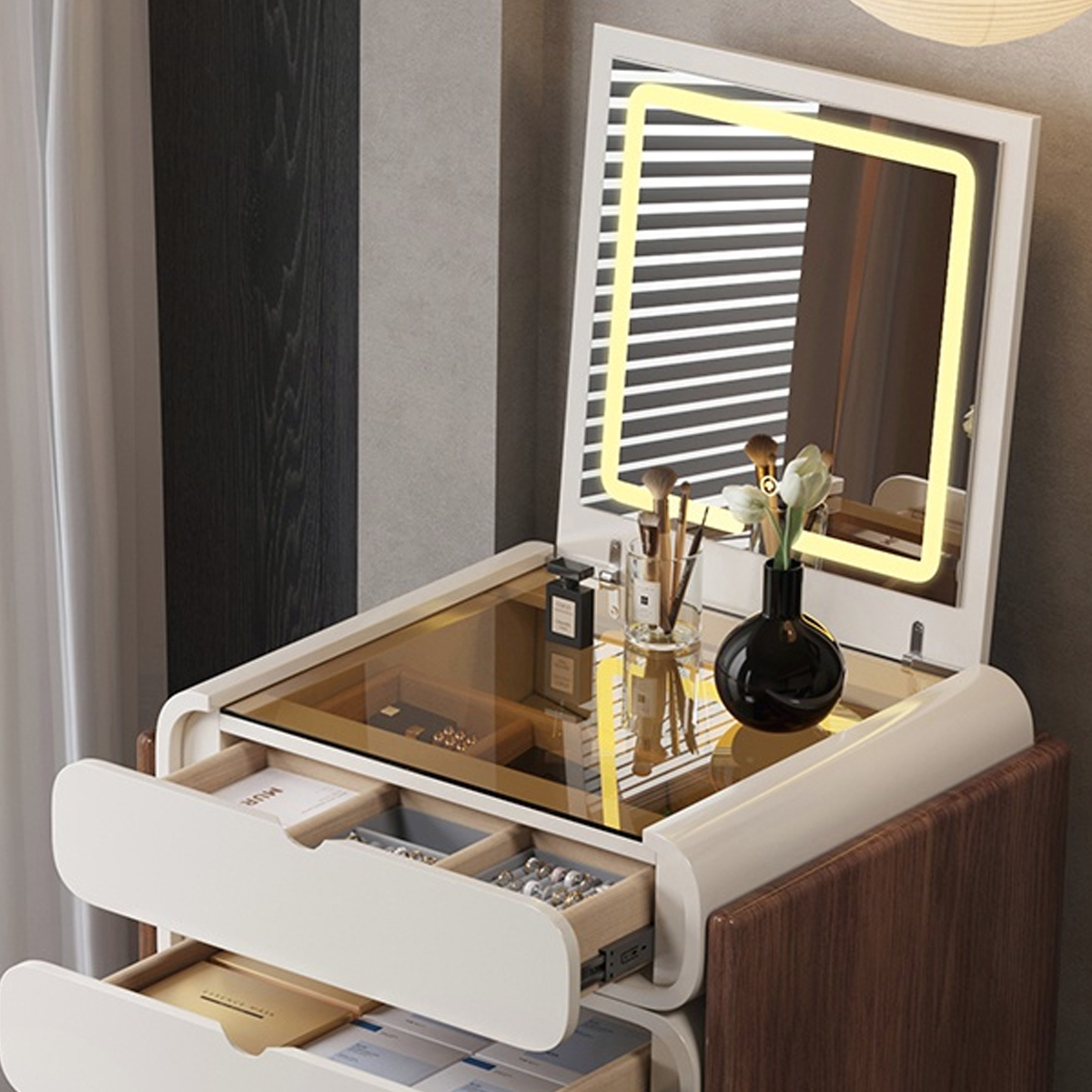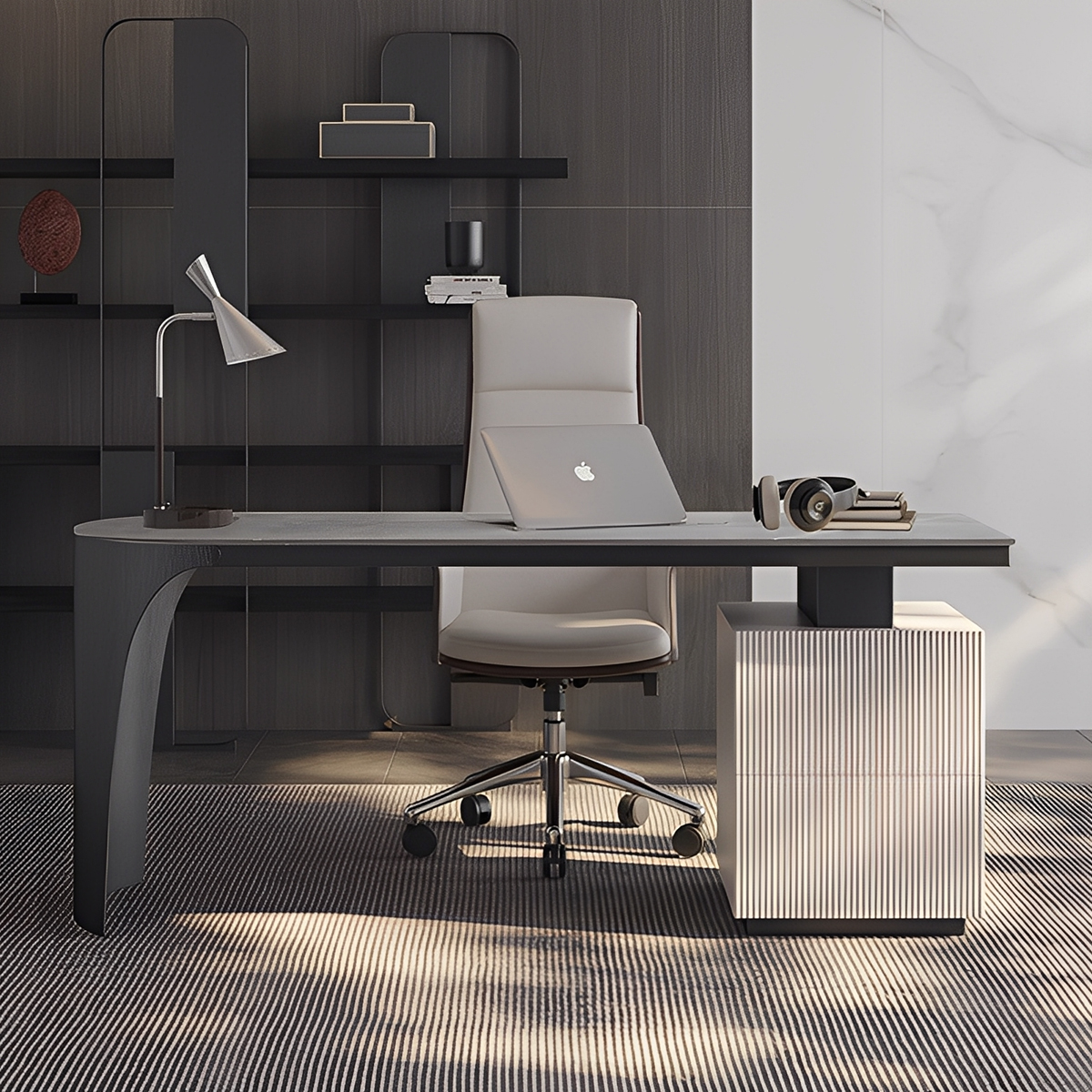 さらに、実用性も抜群。広い天板で書類を広げられるスペース、効率的なケーブル管理機能、収納付きのタイプなど、あなたの作業を快適にする細部へのこだわりが詰まっています。