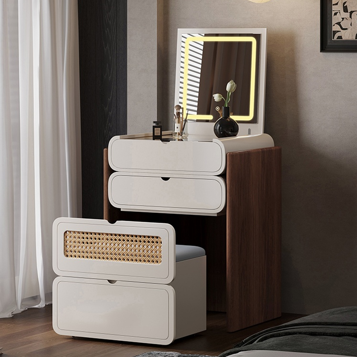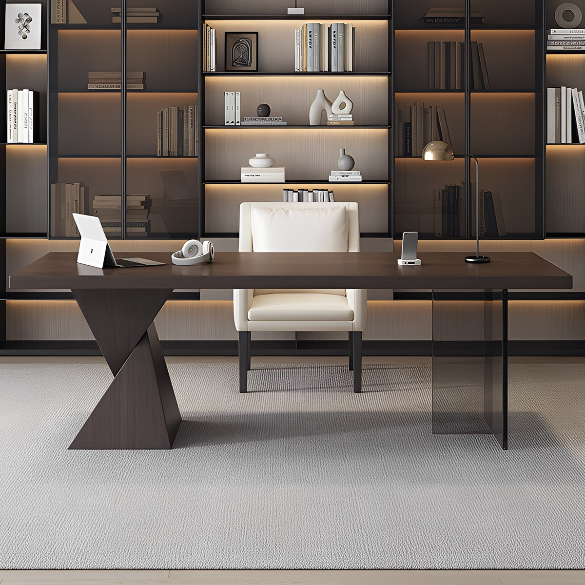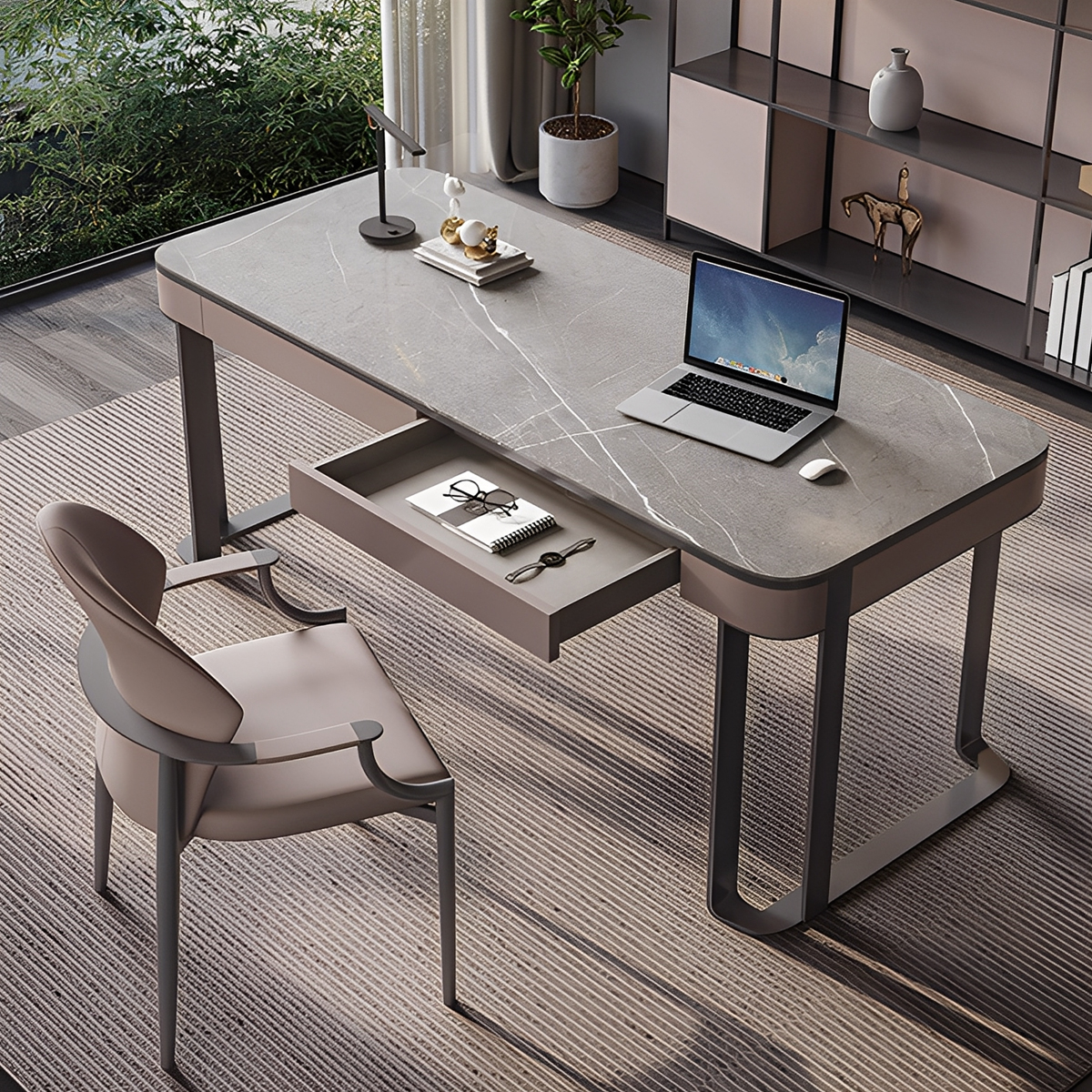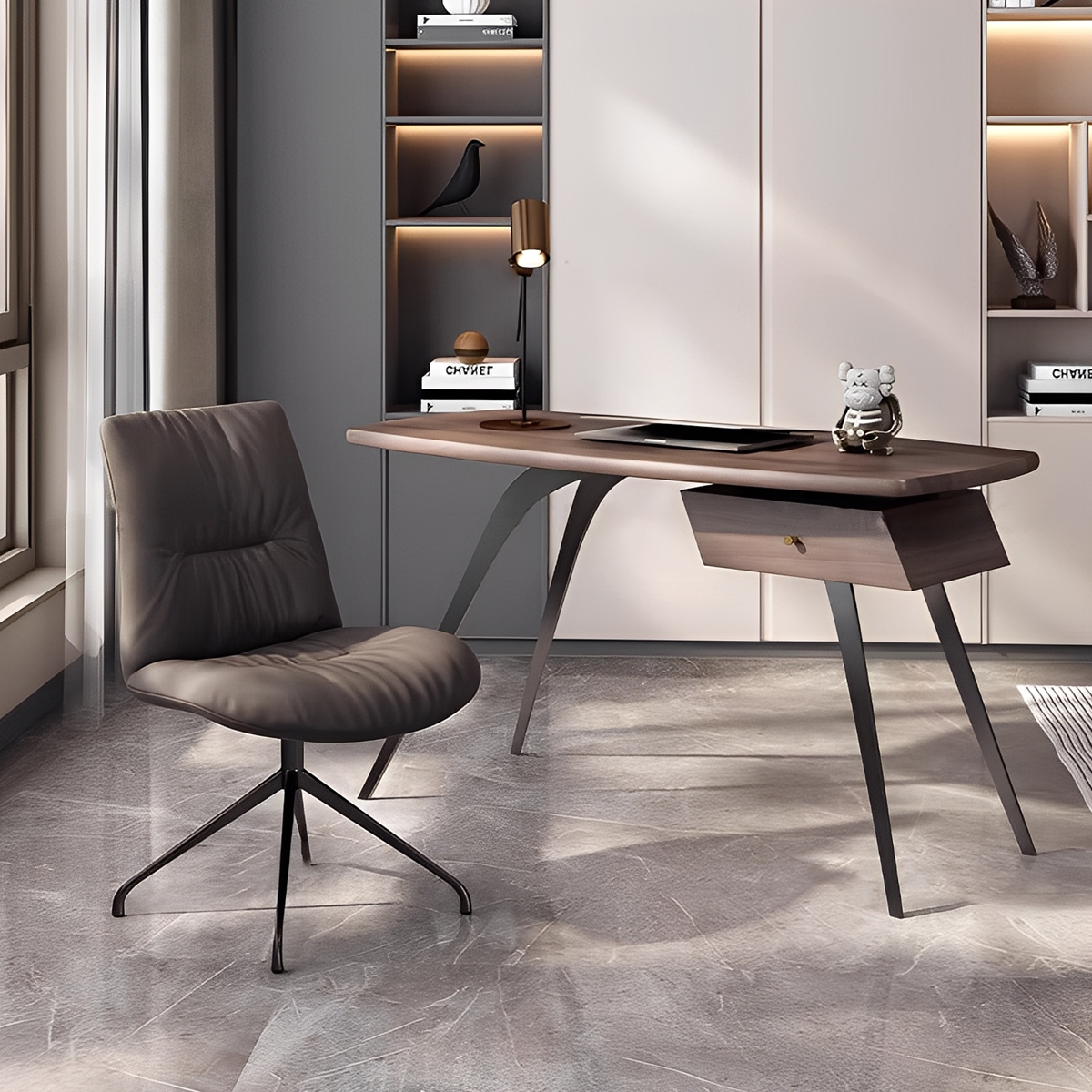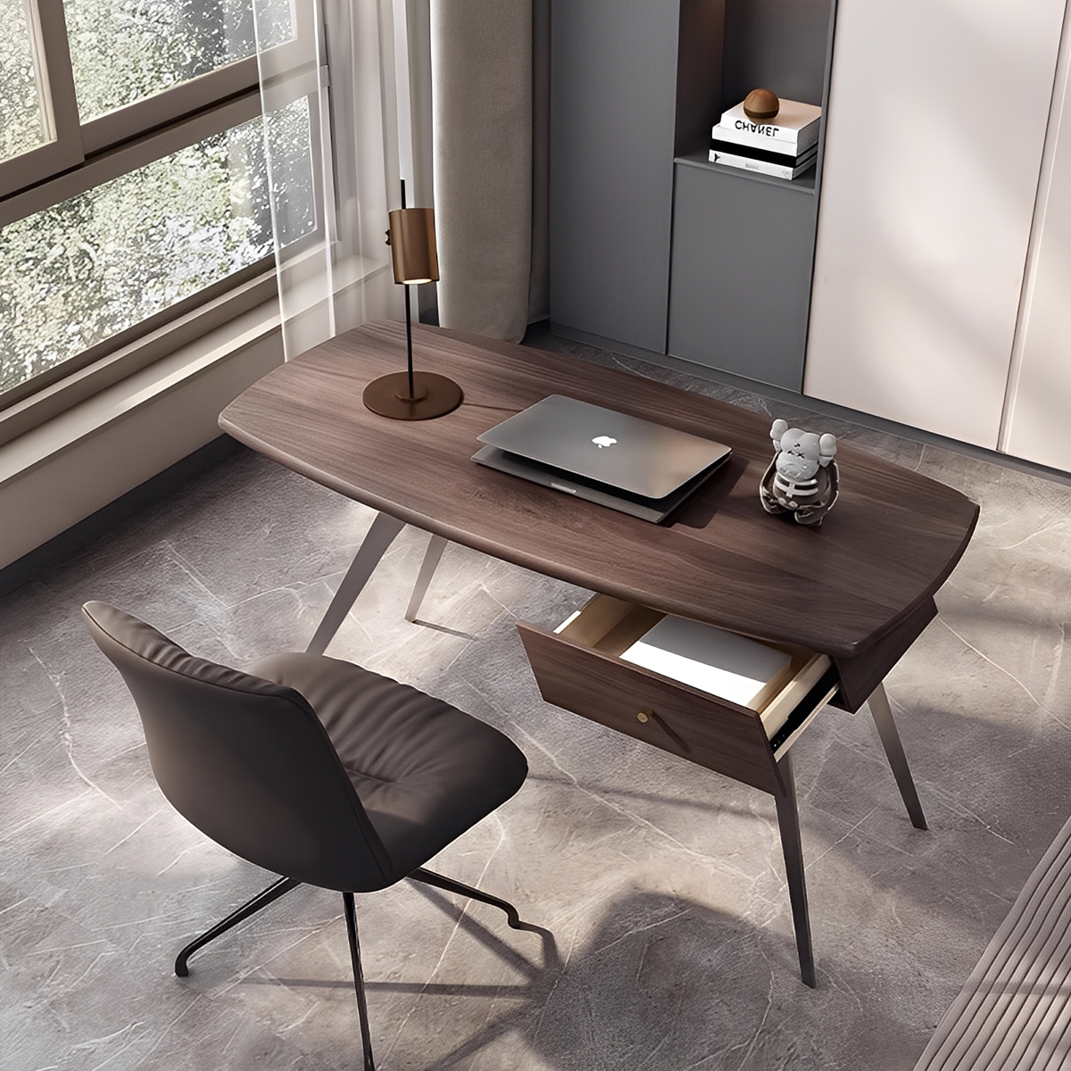 デスクの素材や色は、空間全体の印象を左右します。例えば、集中力を高めたい学習環境には、目に優しいベージュやブラウンを。ナチュラルな木材の温もりを感じるデスクは、リラックスした空間を演出します。