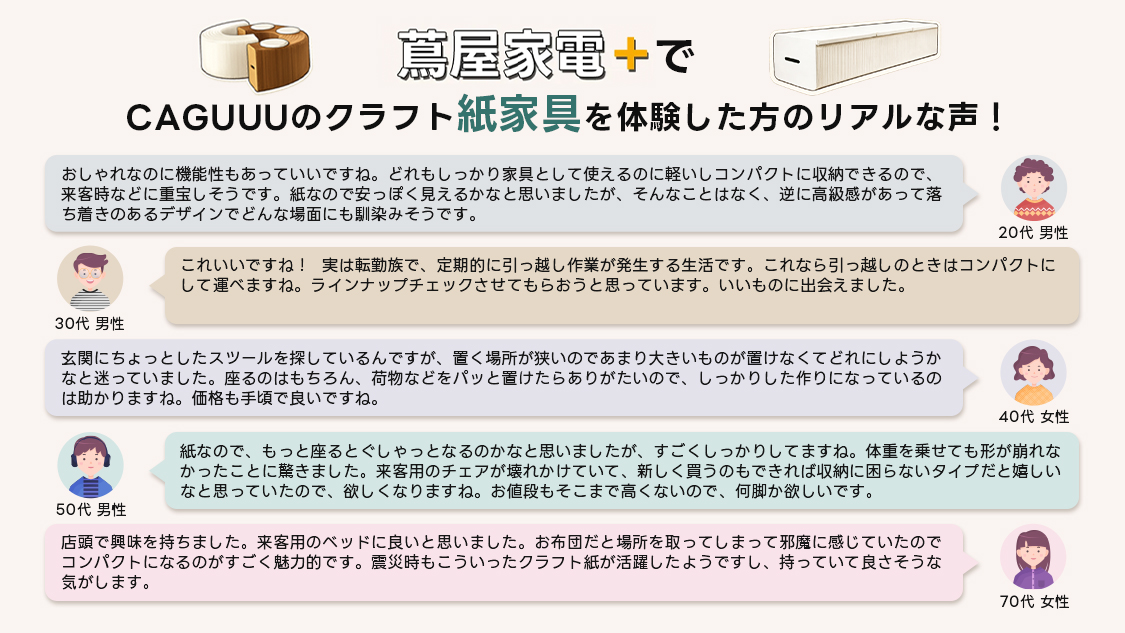 内容 |クラフト紙家具シリーズ人気アイテムの展示・商品解説・店頭購入可