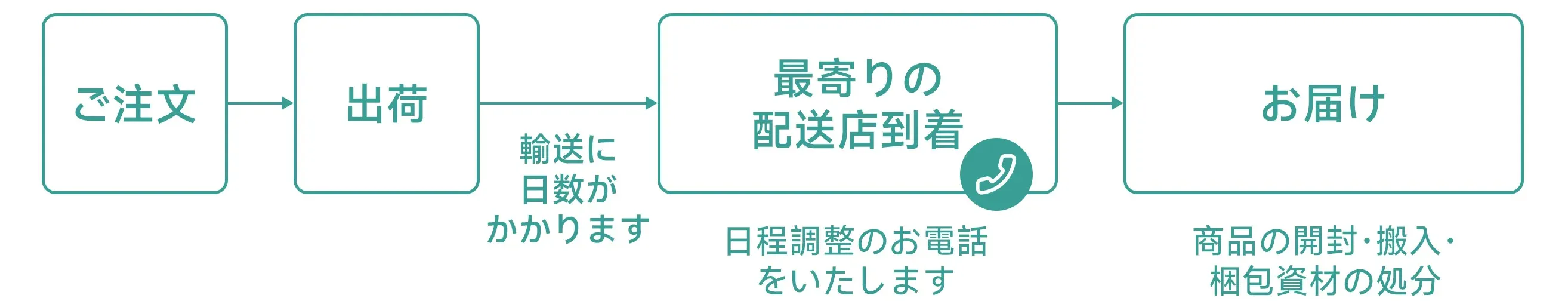 出荷手続き後、配送業者から日程調整のお電話をいたします。