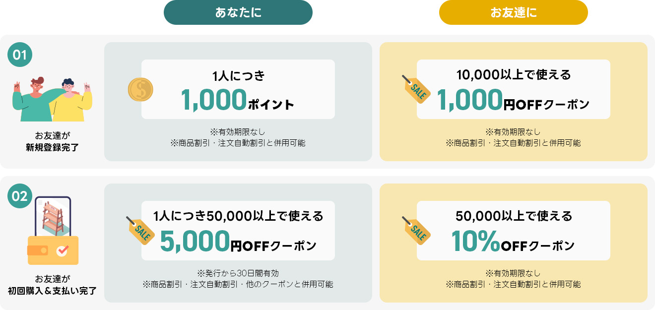 さらに今なら、お友達が初回購入すると紹介者限定・最大5,000円OFFクーポンをプレゼント!