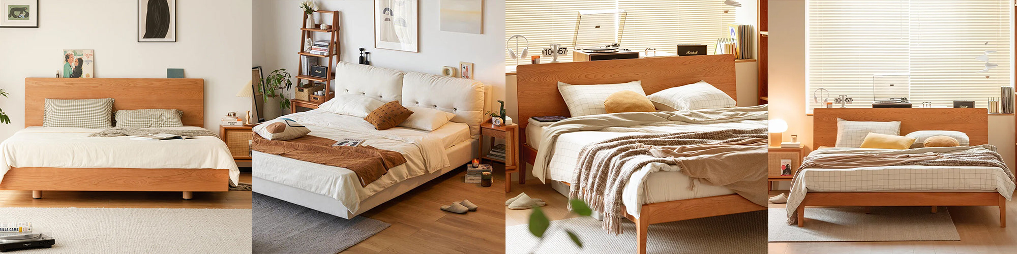 Woody Prime Cherry ナチュラルモダン木製ベッド