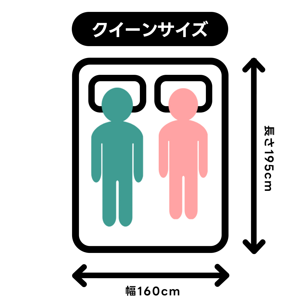 ご夫婦やカップルにぴったりで、2人でも贅沢にゆったり寝れるサイズです。マットレスはクイーンサイズの1枚タイプやセミシングルを2枚並べる分割タイプから選ぶことができます。