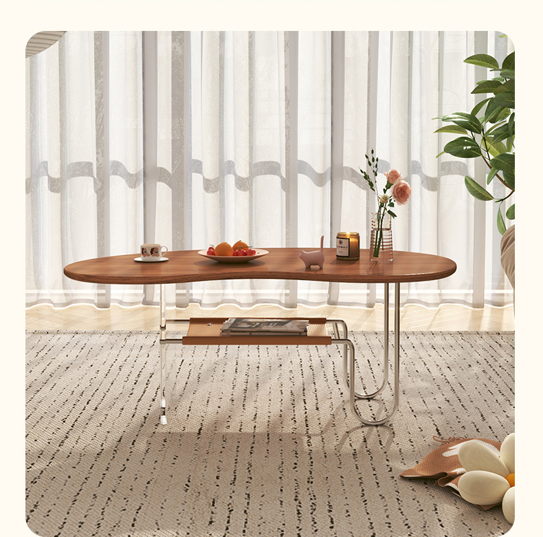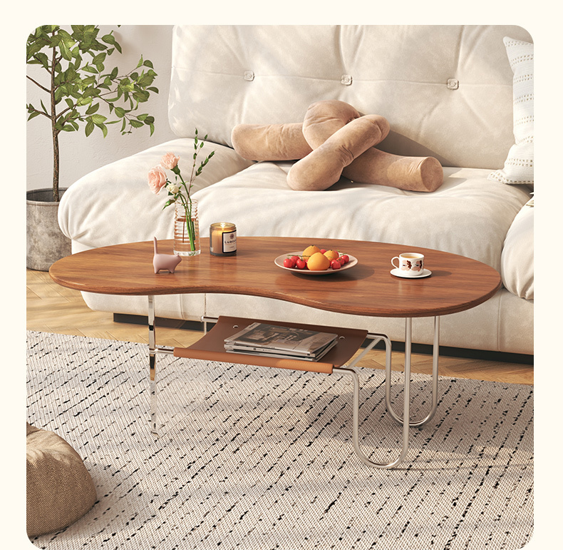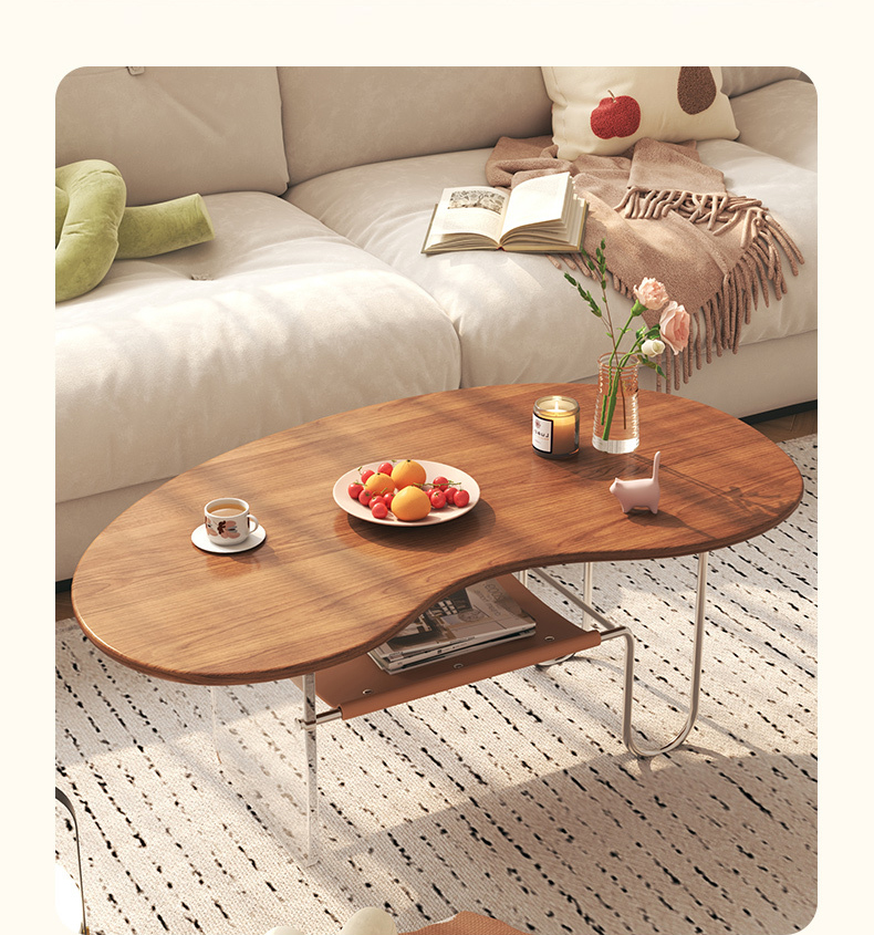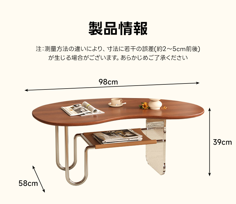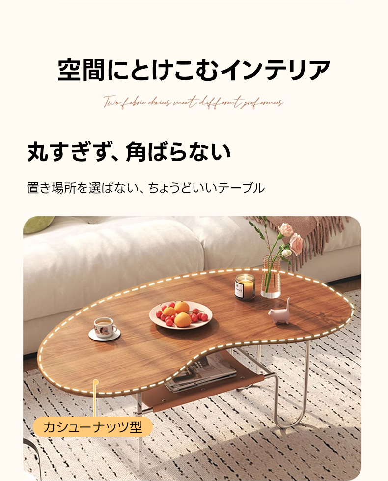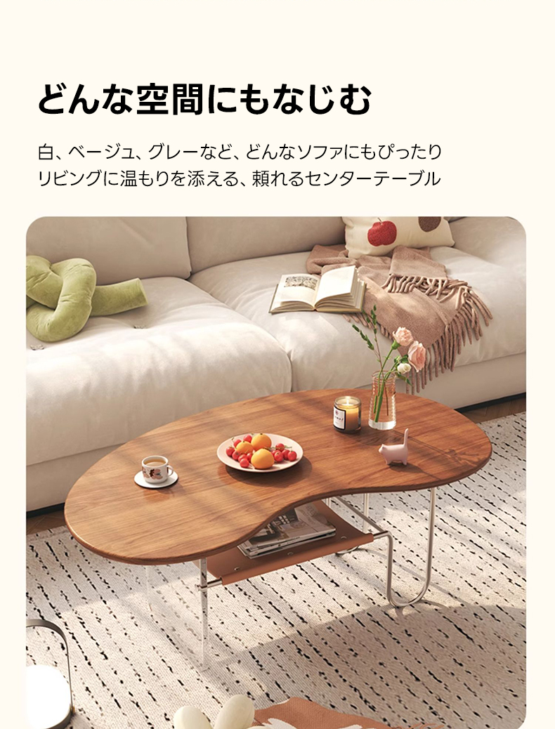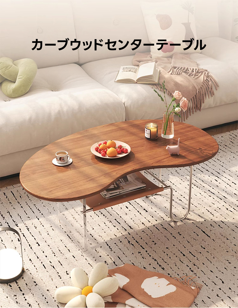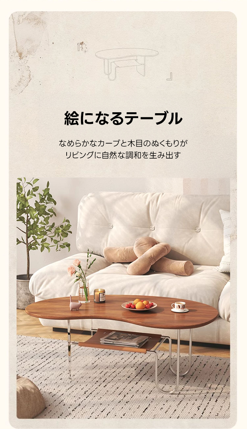 - 【優雅な曲線フォルム】カーブウッドセンターテーブルは、空間に柔らかさを加える優雅な曲線フォルムを採用しています。どんなインテリアにも溶け込み、リビングにスタイルをプラスします。