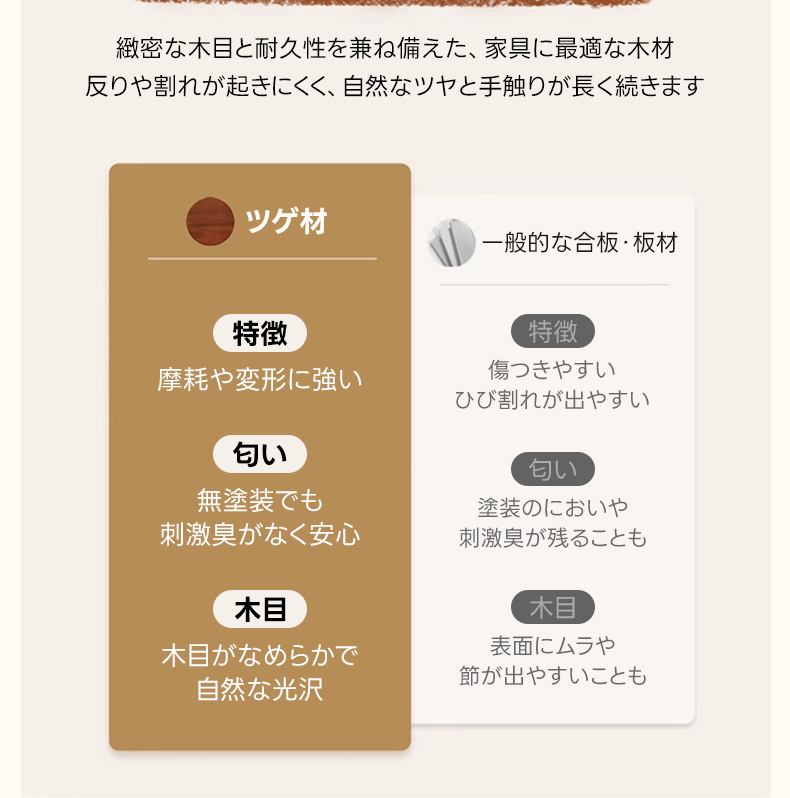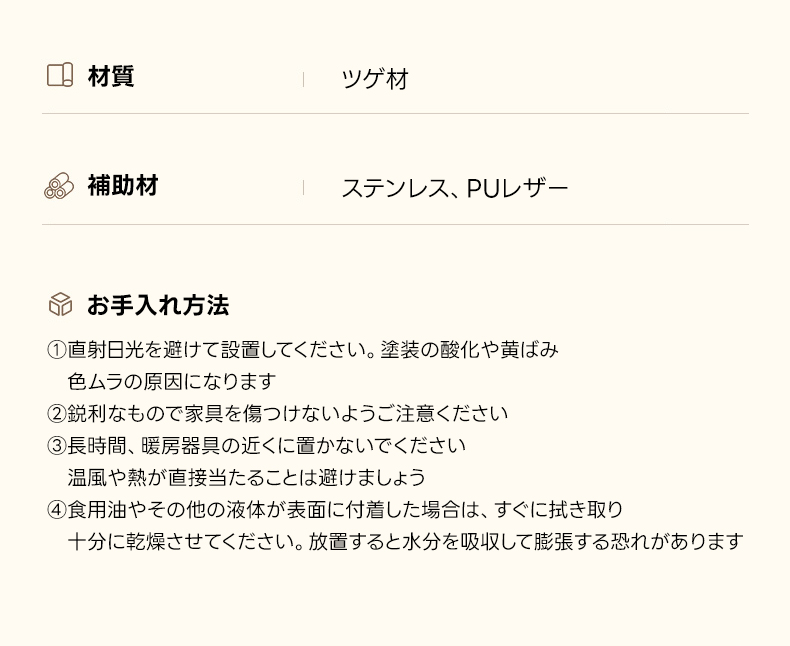 - 【高品質なツゲ材】耐荷重性と耐腐食性に優れたツゲ材を使用し、美しい木目が長く続きます。ステンレスの脚部が木の重厚感を抑え、モダンで洗練された印象を与えます。