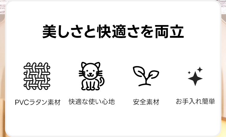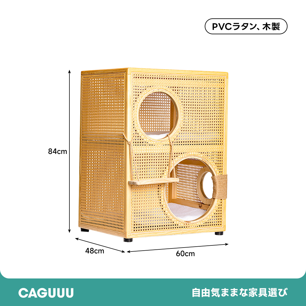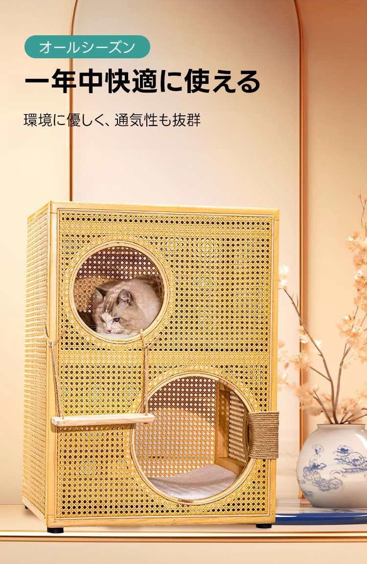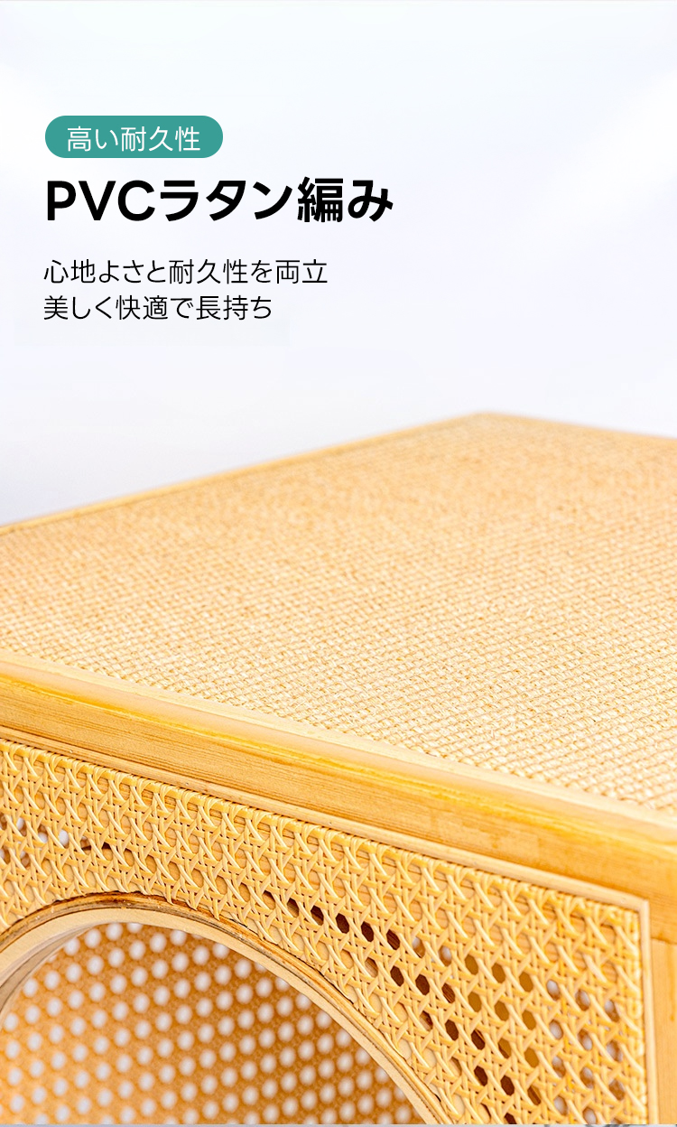 - 【高品質な素材とデザイン】:耐久性のあるPVCラタンと天然木を使用し、美しさと機能性を兼ね備えています。ラタン調のデザインは見た目の美しさだけでなく、通気性も抜群で、ペットに快適な環境を提供します。