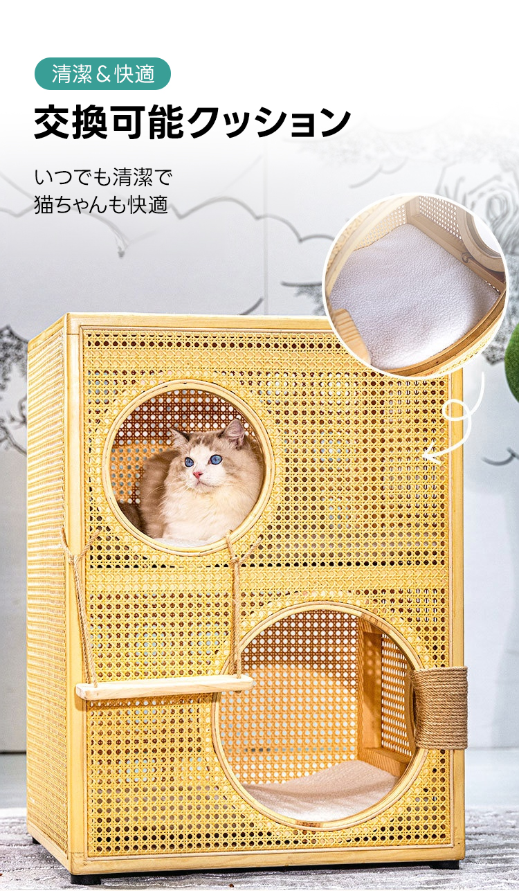 - 【安全で快適な使用感】:丸みのある滑らかな仕上がりで、猫が安全に使用できるように設計されています。交換可能なクッションが付属しており、いつでも清潔で快適な環境を提供します。