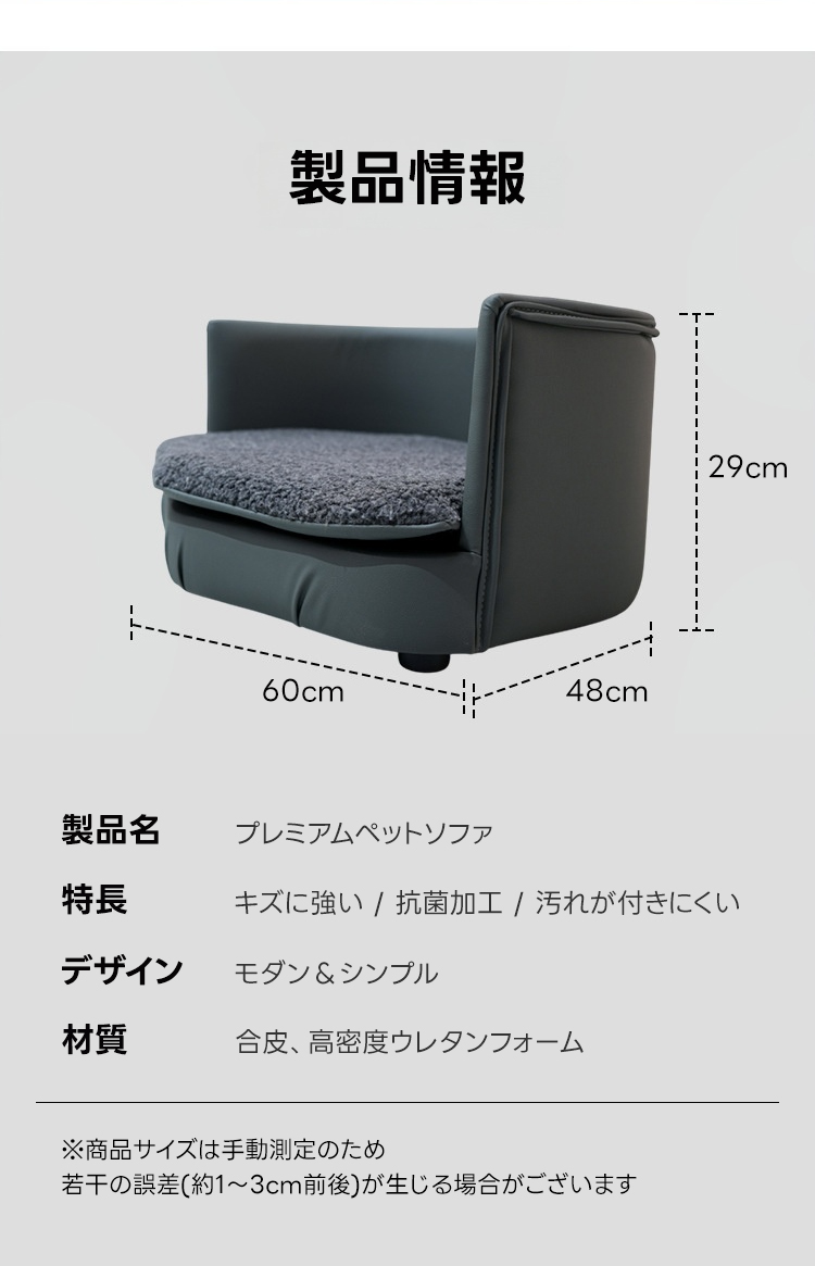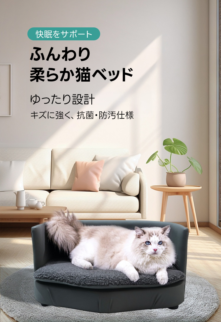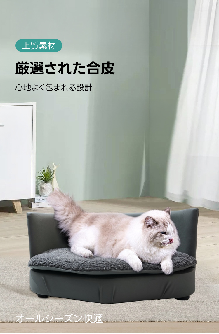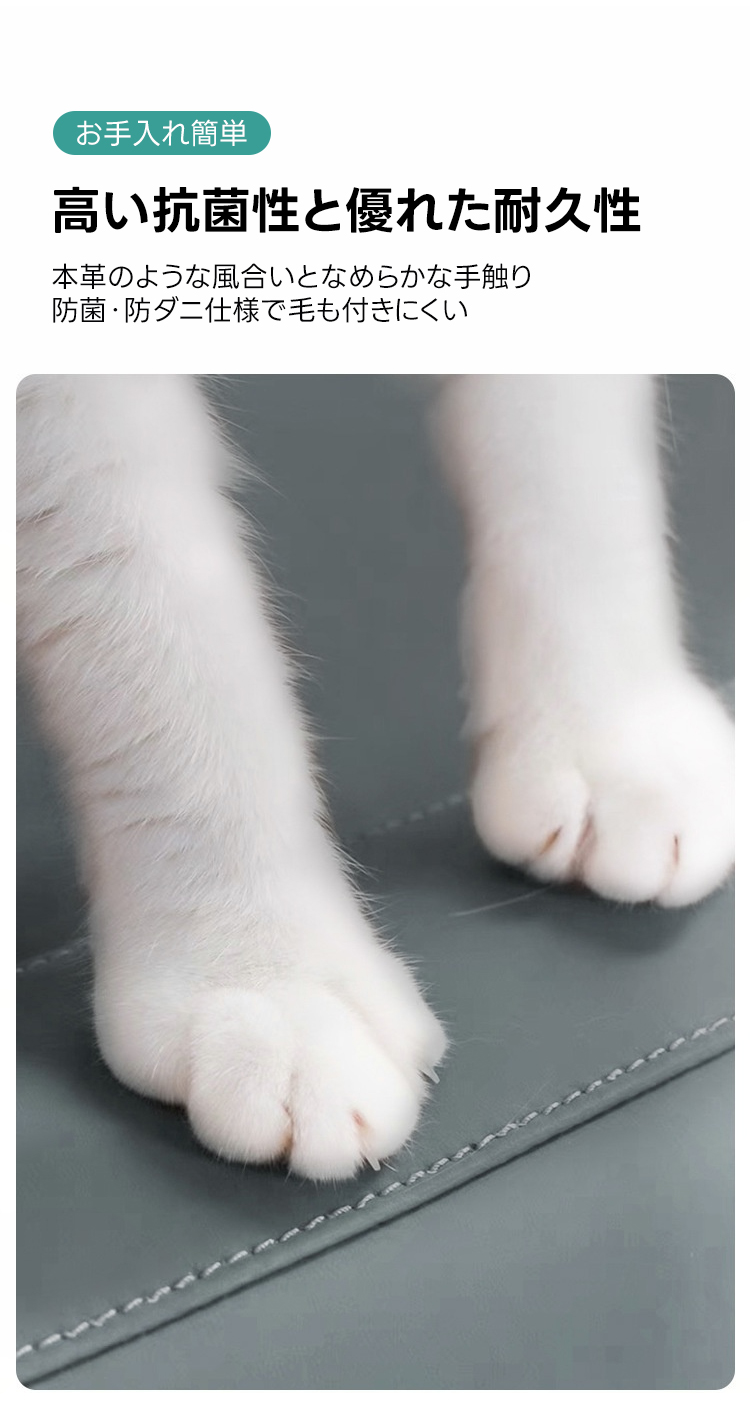 - 【高品質素材で長持ち】厳選された合皮と高密度ウレタンフォームを使用し、耐久性に優れています。抗菌・防汚加工が施されており、ペットの健康を守りつつお手入れも簡単です。