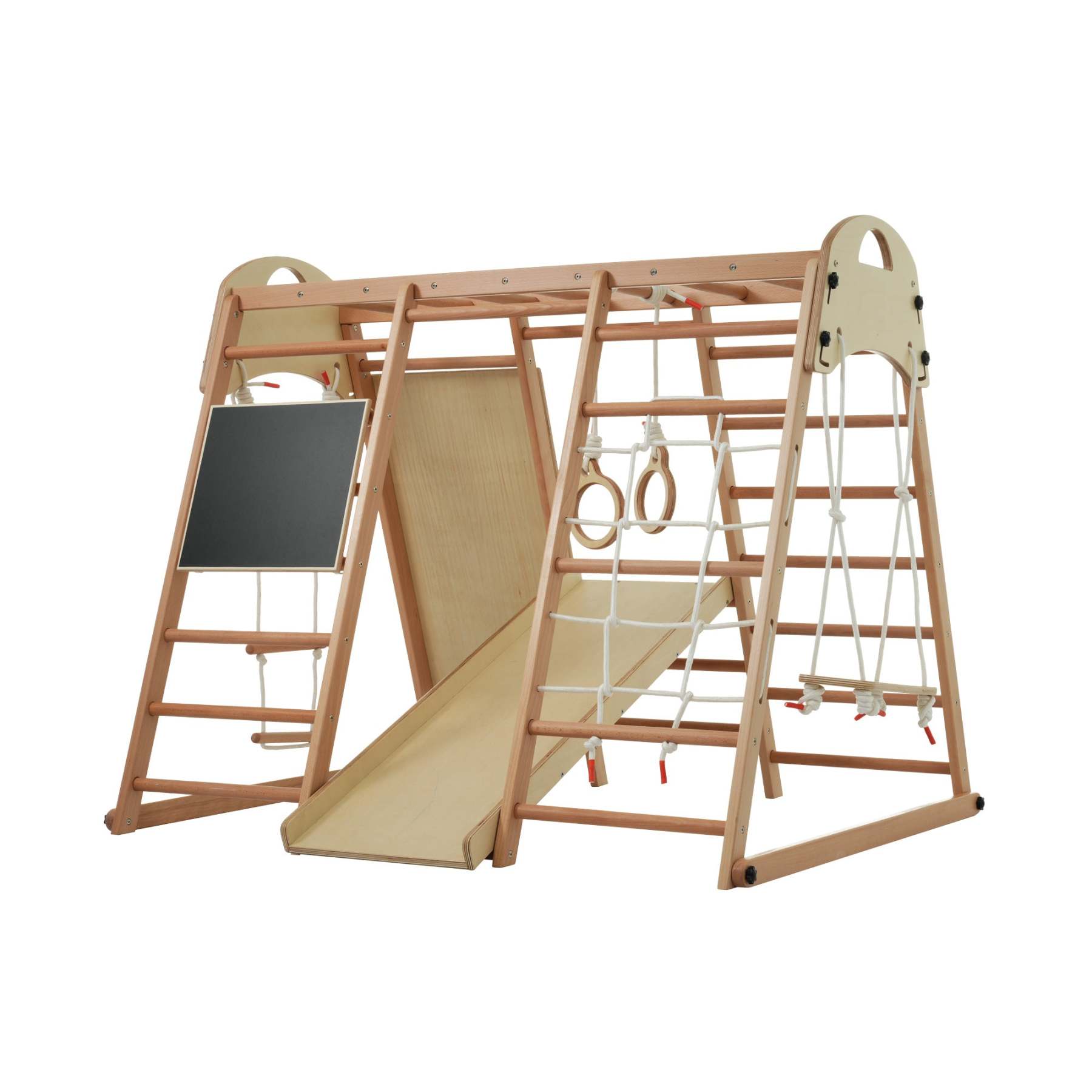 - 【多機能デザインで楽しい遊びを提供】この木製子供用室内ジャングルジムは、滑り台、ブランコ、クライミングウォールなど8つの異なる遊び要素を一つにまとめ、お子様の遊びと成長をサポートします。多様な身体活動を楽しむことで、バランス感覚や運動能力を育むことができます。