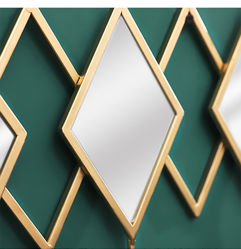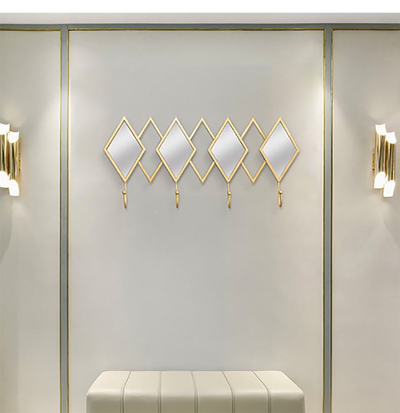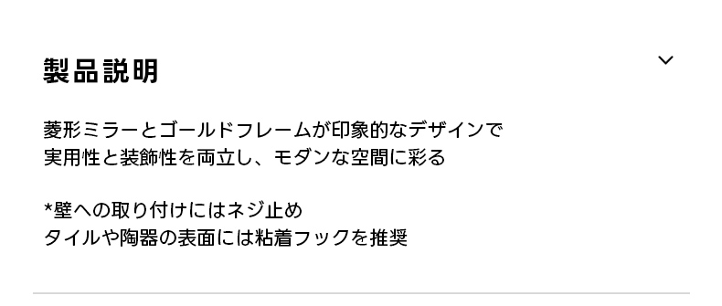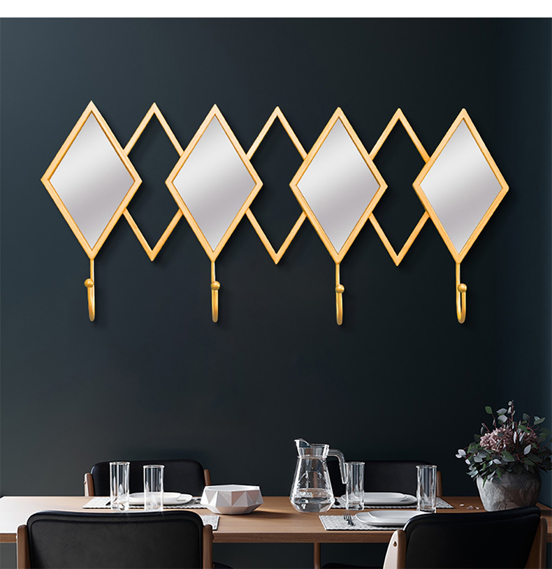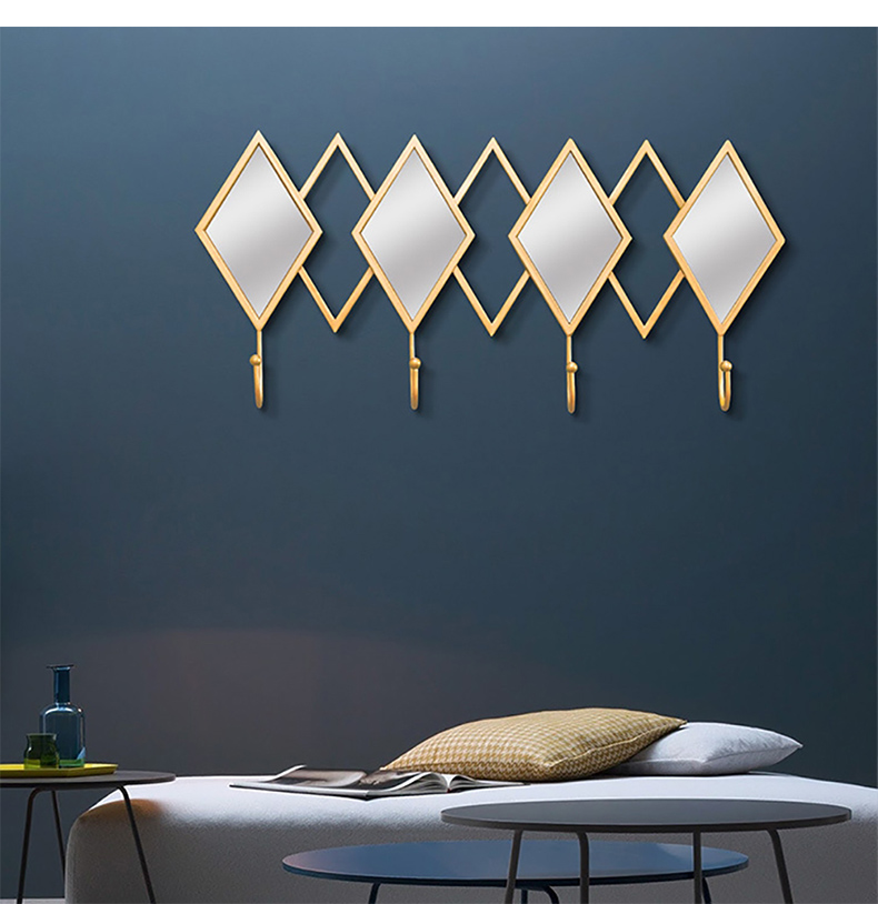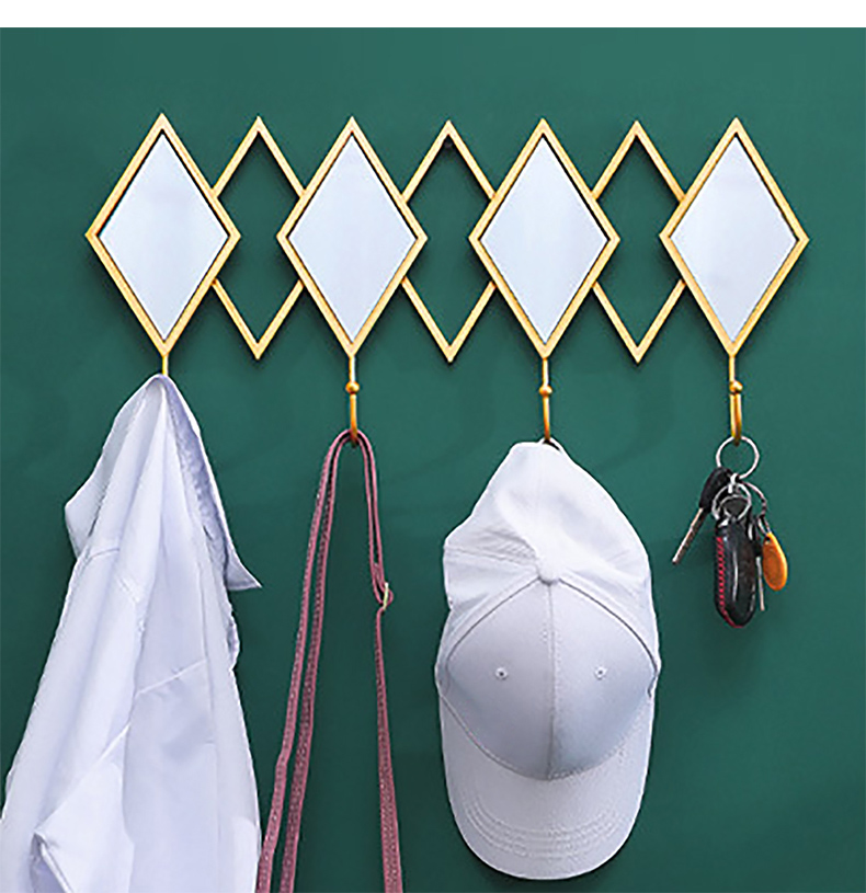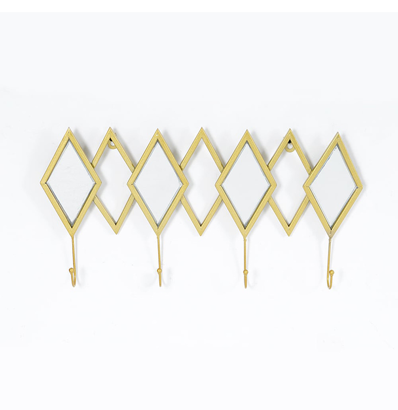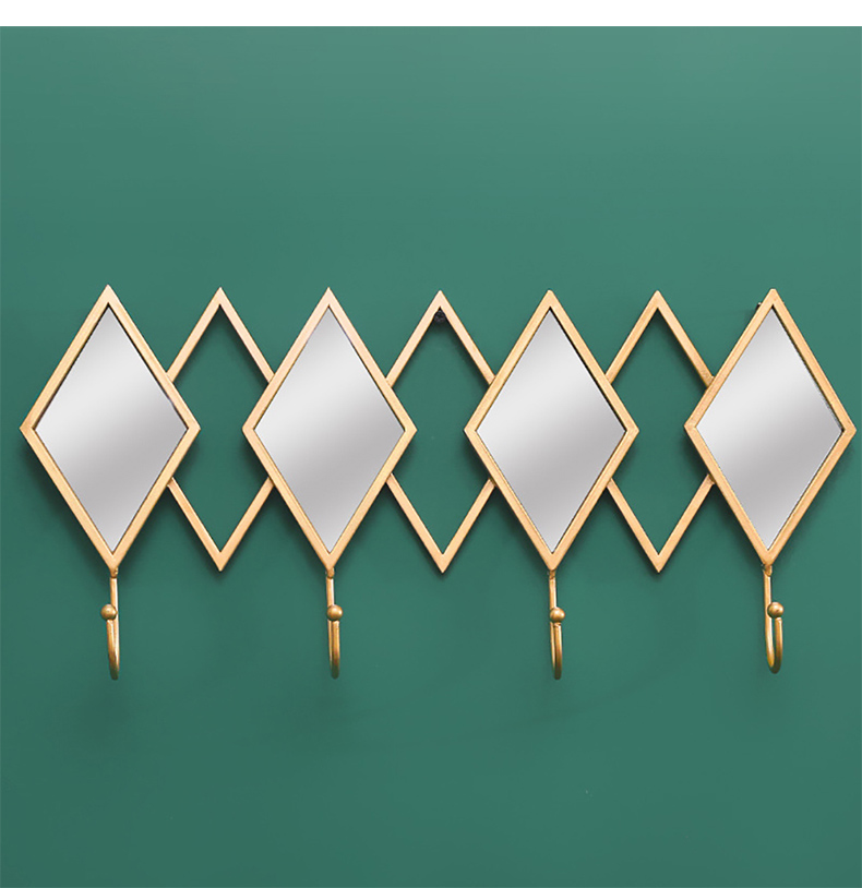 - 【高品質な素材とデザイン】金属製のフレームとフックは耐久性に優れ、長期間使用しても美しさを保ちます。菱形ミラーとゴールドフレームが印象的で、モダンな空間を演出します。