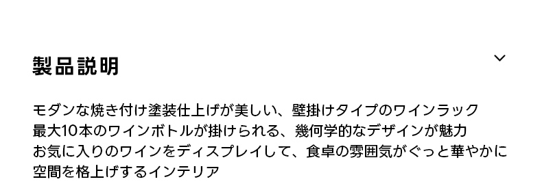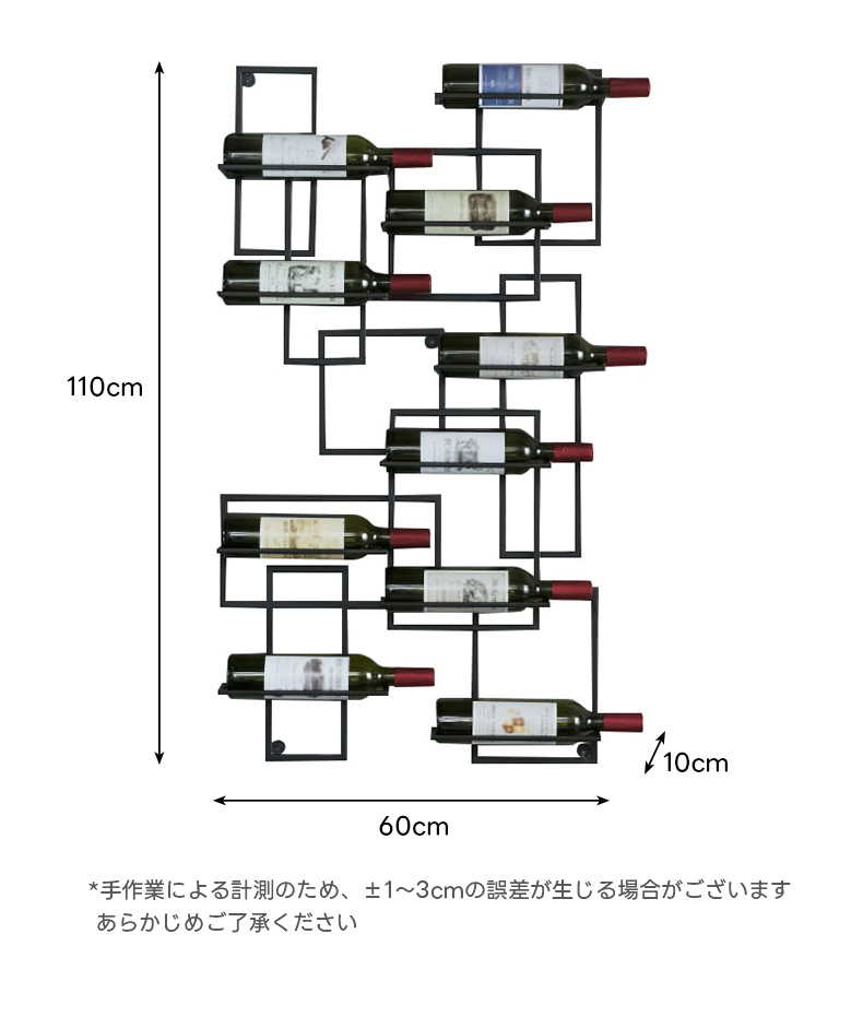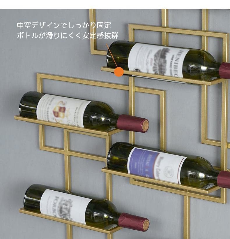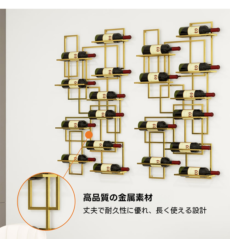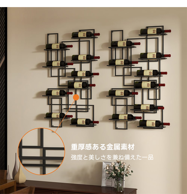 - 【簡単な組立と設置】:組立が簡単で、すぐにインテリアとしてお楽しみいただけます。壁にしっかりと固定できる設計で、ボトルが滑りにくく安心です。コンパクトなサイズで、スペースを有効に活用できます。
