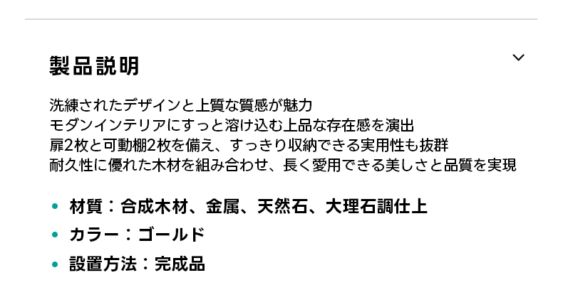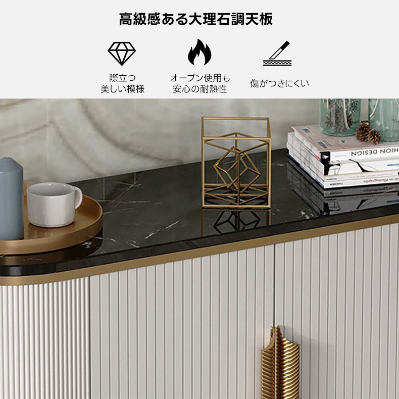 - 【耐久性に優れた素材】:合成木材、金属、天然石、大理石調仕上げの耐久性に優れた素材を使用しており、長く愛用できる品質を実現しています。天板はセラミック製で、傷がつきにくく、耐熱性もあるため安心して使用できます。