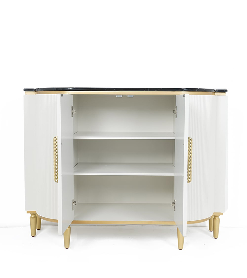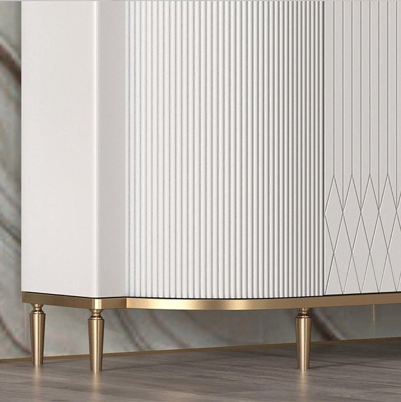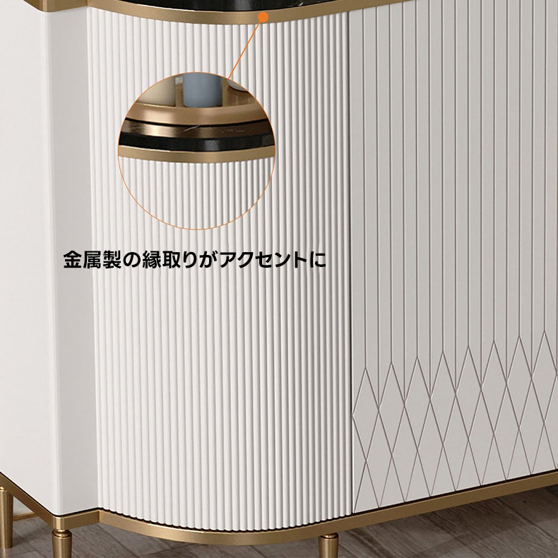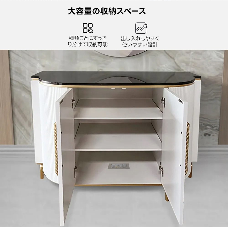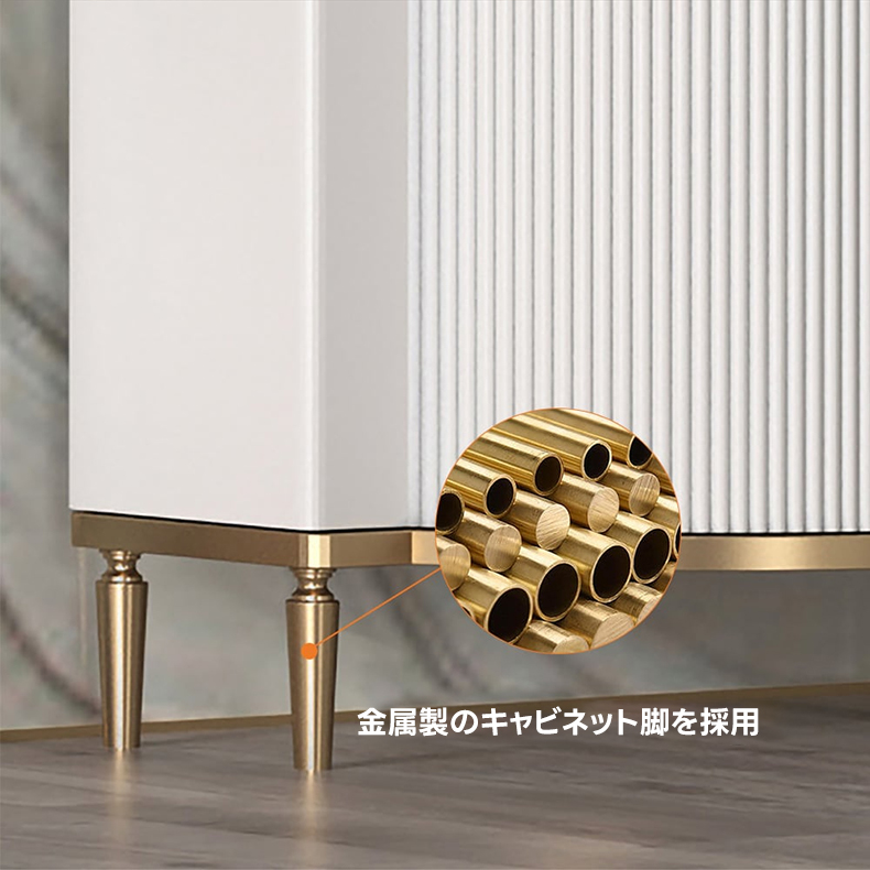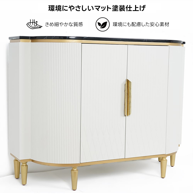 - 【洗練されたデザインと高級感】:ラグジュアリーデザインキャビネットは、北欧風の洗練されたデザインと高級感が魅力の収納家具です。ホワイトとゴールドのカラーリングが、モダンなインテリアにぴったりと溶け込み、上品な存在感を演出します。