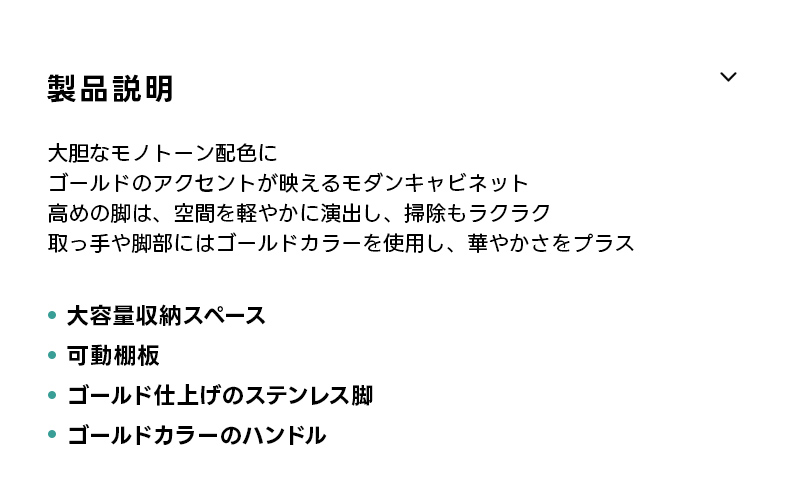 - 【高品質な素材と豪華なデザイン】高品質なMDFボードを使用し、耐久性と美しさを両立しています。ゴールド仕上げのステンレス脚とハンドルが、豪華さをプラスし、空間を華やかに演出します。組立品として提供されるため、設置も簡単です。
