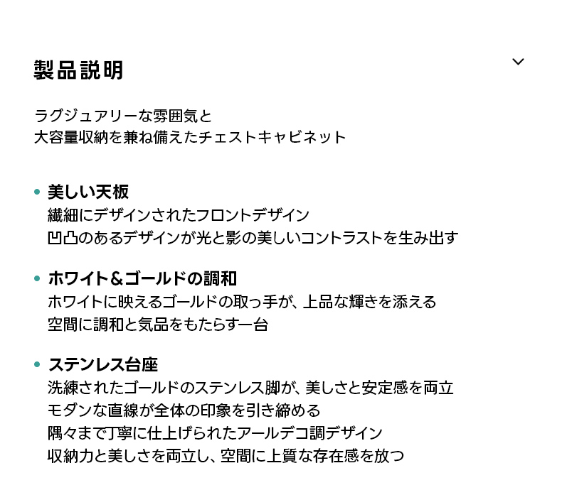 - 【ユーザーに優しいデザイン】:組み立て不要の完成品としてお届けしますので、すぐにご使用いただけます。アールデコ調のフロントデザインは、光と影の美しいコントラストを生み出し、空間に高級感をもたらします。