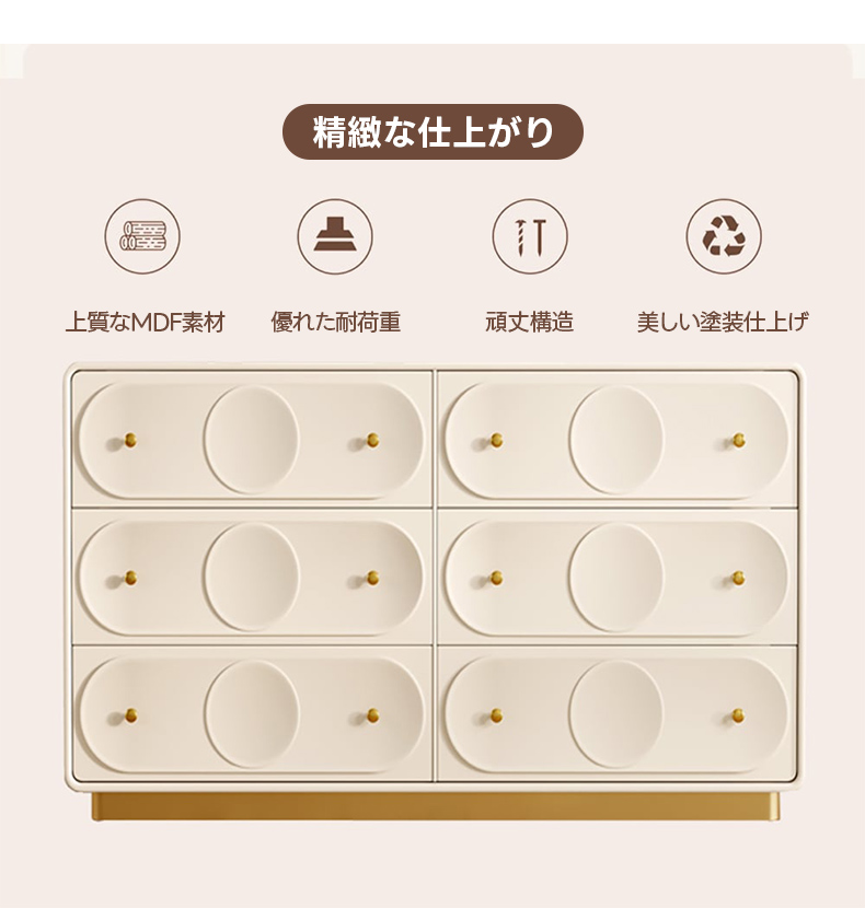 - 【機能性とデザイン性を兼ね備えたチェスト】:オーバルラインチェストは、北欧風のデザインと実用的な収納機能を兼ね備えています。6つの引き出しを備えた大容量で、リビングルームの整理整頓に最適です。