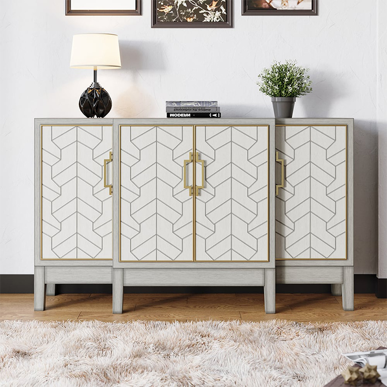 - 【高品質な素材と洗練されたデザイン】高品質なMDFと耐久性に優れた金属を使用し、長くお使いいただけます。ゴールドの取っ手がアクセントとなり、洗練された直線と彫刻風のデザインが高級感を演出します。