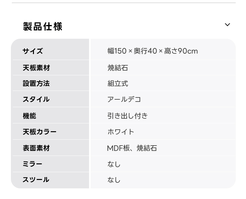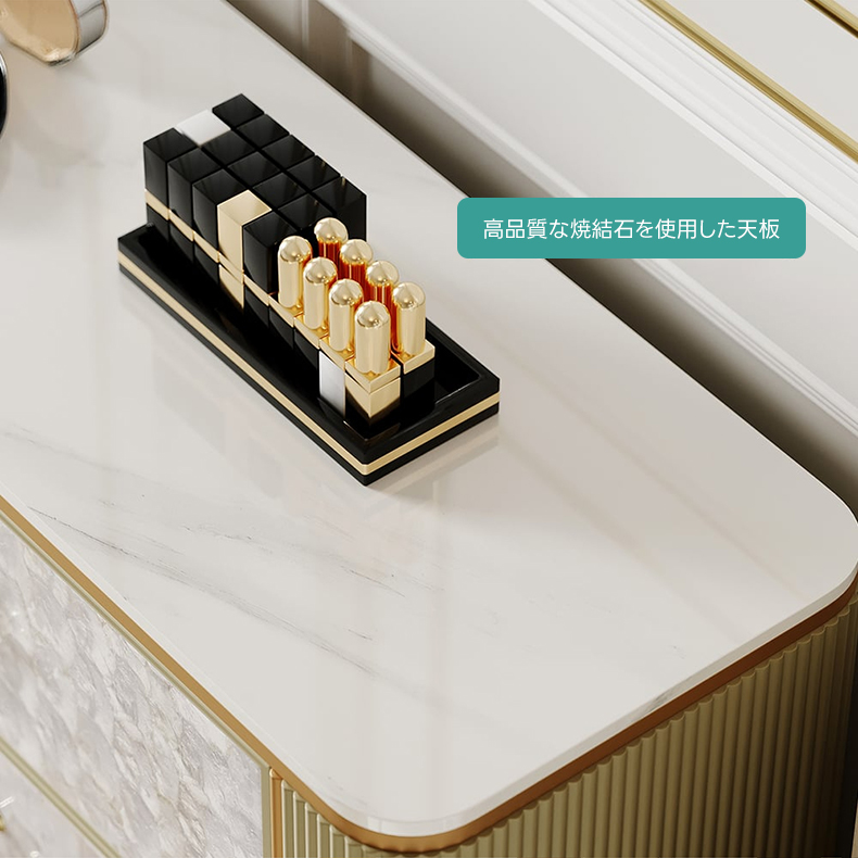 - 【高品質な素材とデザイン】:天板には耐久性と上質感を兼ね備えた焼結石を使用。美しいだけでなく、日常使いにも安心な高性能素材です。側面のリブ加工が洗練されたデザインを引き立てます。