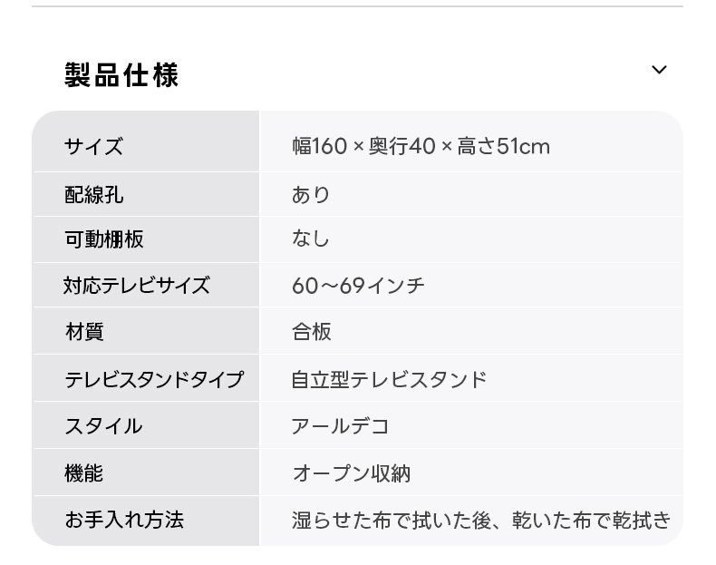 - 【高品質な合成板&アールデコスタイル】合成板を使用したこのTVボードは、耐久性に優れ、長期間使用しても美しさを保ちます。アールデコスタイルのデザインが空間にリズムを与えます。