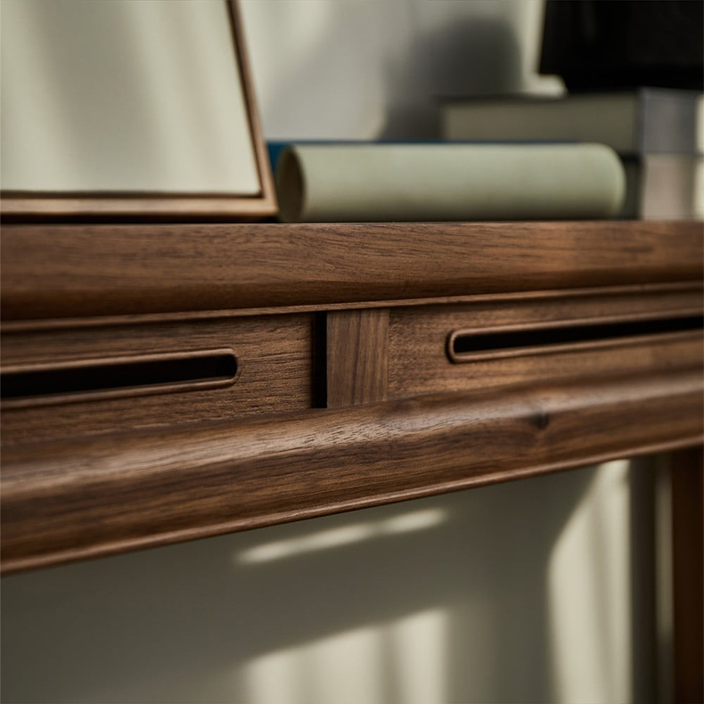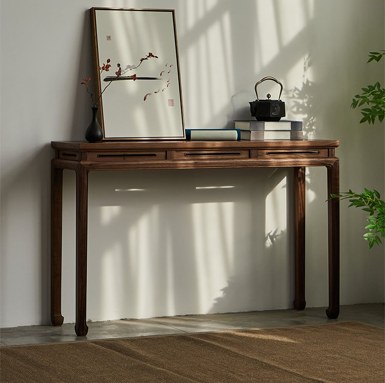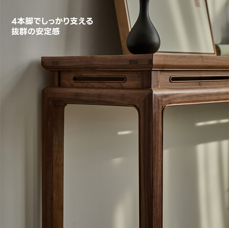 - 【多機能なコンソールテーブル】:ナチュラル ウォールナット材を使用したこのコンソールテーブルは、クラシックなデザインと高級感を兼ね備えています。玄関やリビングでお気に入りのインテリア小物を飾るのに最適で、ダイニングスペースにもぴったりの一品です。