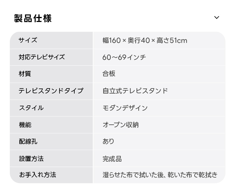 - 【多様な適用シーン】幅160cm、奥行40cm、高さ51cmのサイズで、60〜69インチのテレビに対応。オープン収納スペースは雑誌や小物を美しくディスプレイでき、カップルやファミリーのリビングに最適です。