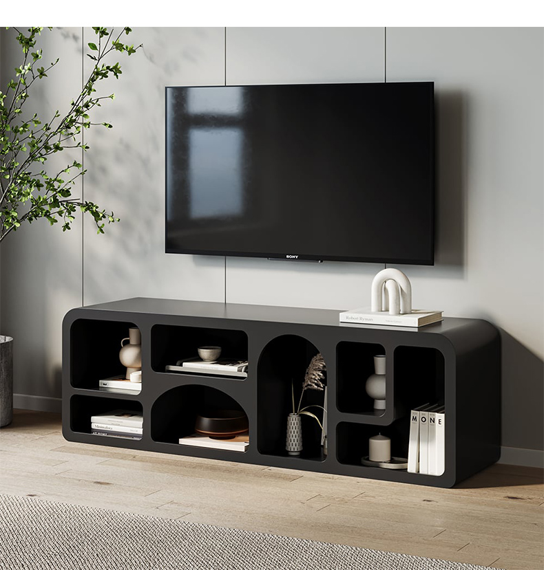 - 【モダンでスタイリッシュなデザイン】このアールデコ風ブラックTVボードは、北欧風の洗練されたデザインとアールデコスタイルを融合。リビングにモダンでスタイリッシュな雰囲気を演出します。ブラックの合成板と金属を使用し、長方形のシルエットが特徴です。