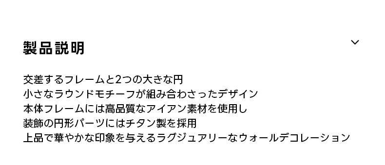 - 【高品質な素材と優れた耐久性】: 本体フレームには高品質なアイアン素材を使用し、装飾の円形パーツにはチタン製を採用。これにより、耐久性と高級感を兼ね備えた製品に仕上がっています。