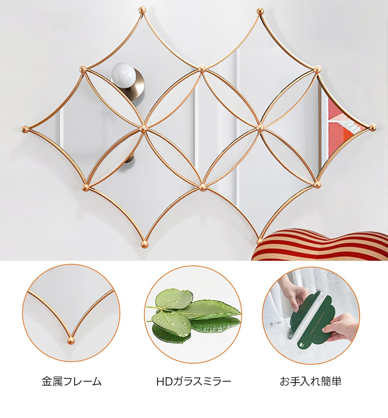 - 【高品質な素材とデザイン】金属フレームとHDガラスミラーを使用し、耐久性とクリアな映りを実現しています。大きめのサイズで、部屋全体を明るくし、広々とした印象を与えます。