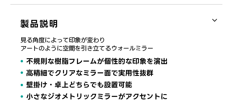- 【高精細クリアミラーで実用性抜群】このミラーは高精細でクリアなミラー面を持ち、日常の使用においても視認性が高く、快適にお使いいただけます。どの角度から見ても印象が変わるアートのようなデザインが特徴です。