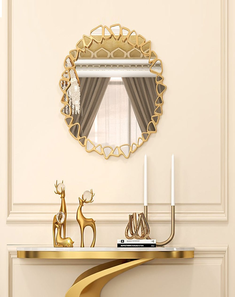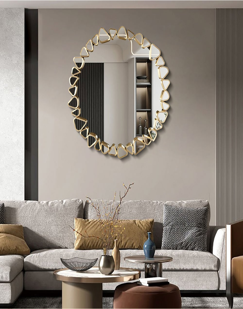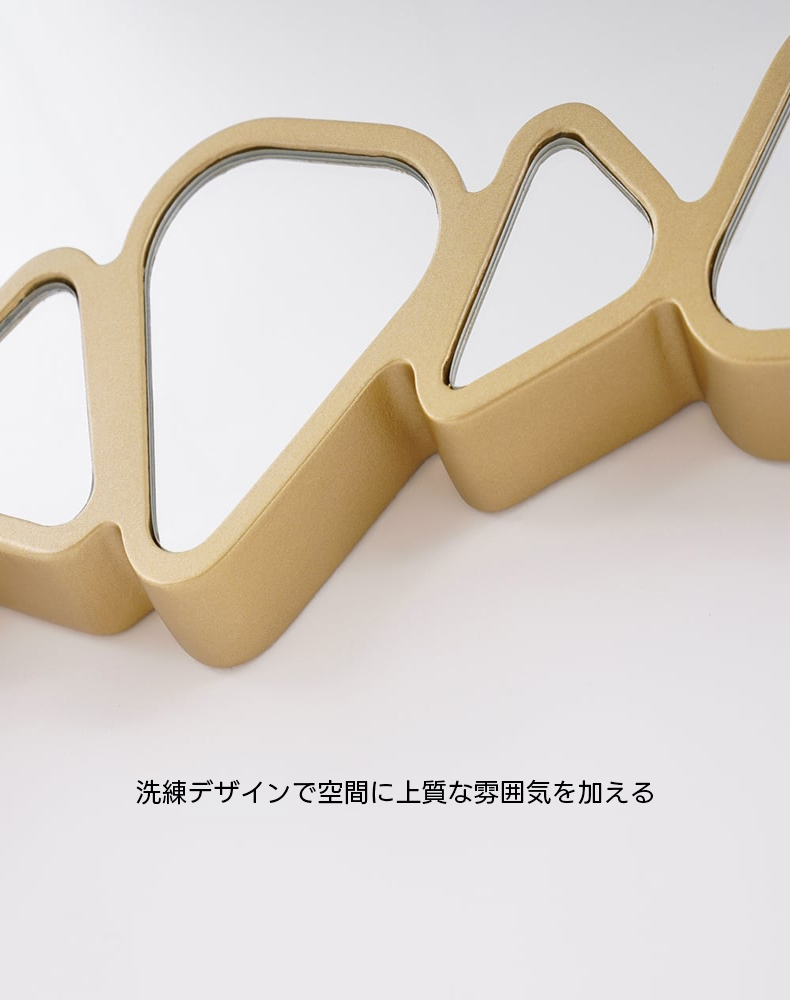 - 【不規則な樹脂フレームとゴールドカラー】独特な不規則形状の樹脂フレームが、空間に個性的な印象を与えます。ゴールドカラーがラグジュアリーな雰囲気を演出し、どんなインテリアにも高級感をプラスします。