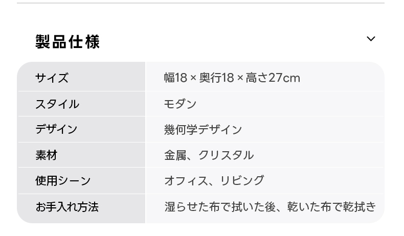 - 【高品質な素材とデザイン】金属とクリスタルの組み合わせにより、耐久性と高級感を両立。幅18cm、奥行18cm、高さ27cmのコンパクトサイズで、どんな場所にもフィットします。
