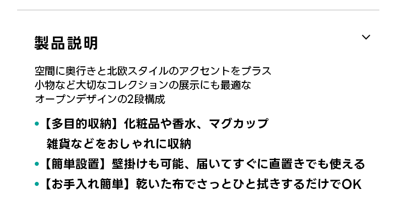- 【カップルやファミリー、一人暮らしにも最適】:家族の思い出を飾ったり、日常の小物を整理するのに最適なシェルフです。限られたスペースを有効活用し、スタイリッシュな空間を作り出します。
