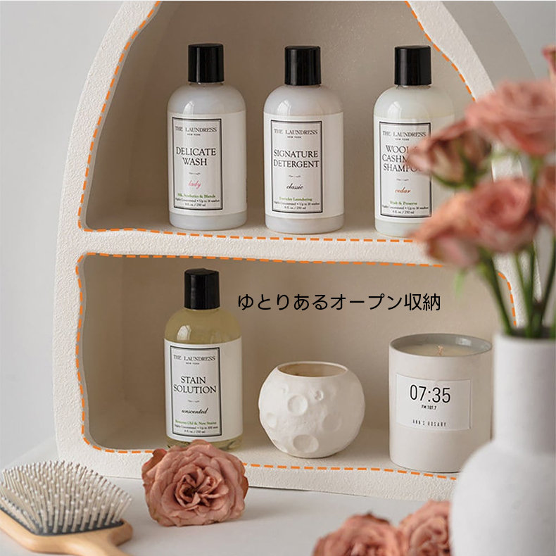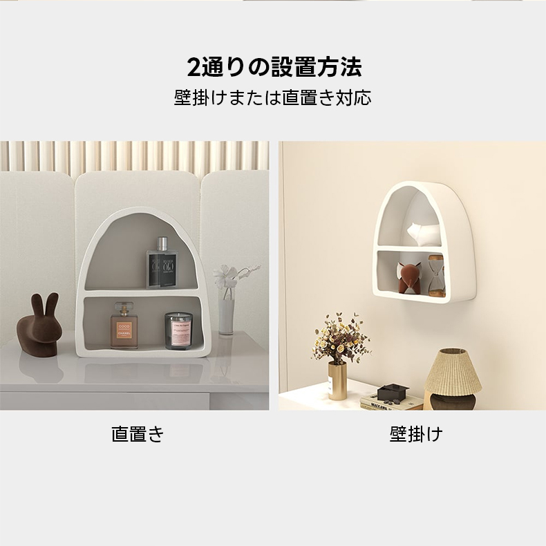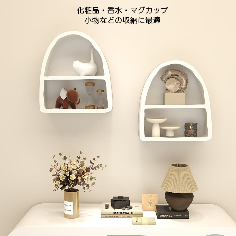 - 【多目的収納で空間を有効活用】:アーチ型壁掛けホワイトシェルフは、化粧品や香水、マグカップなどの小物をおしゃれに収納できる多目的収納シェルフです。オープンデザインの2段構成で、コレクションの展示にも最適です。