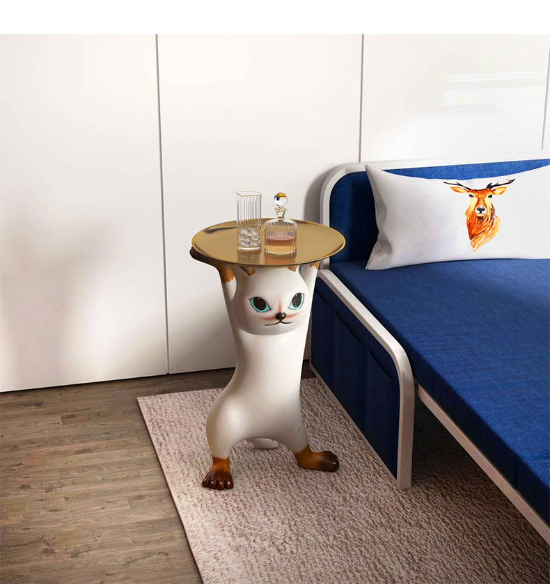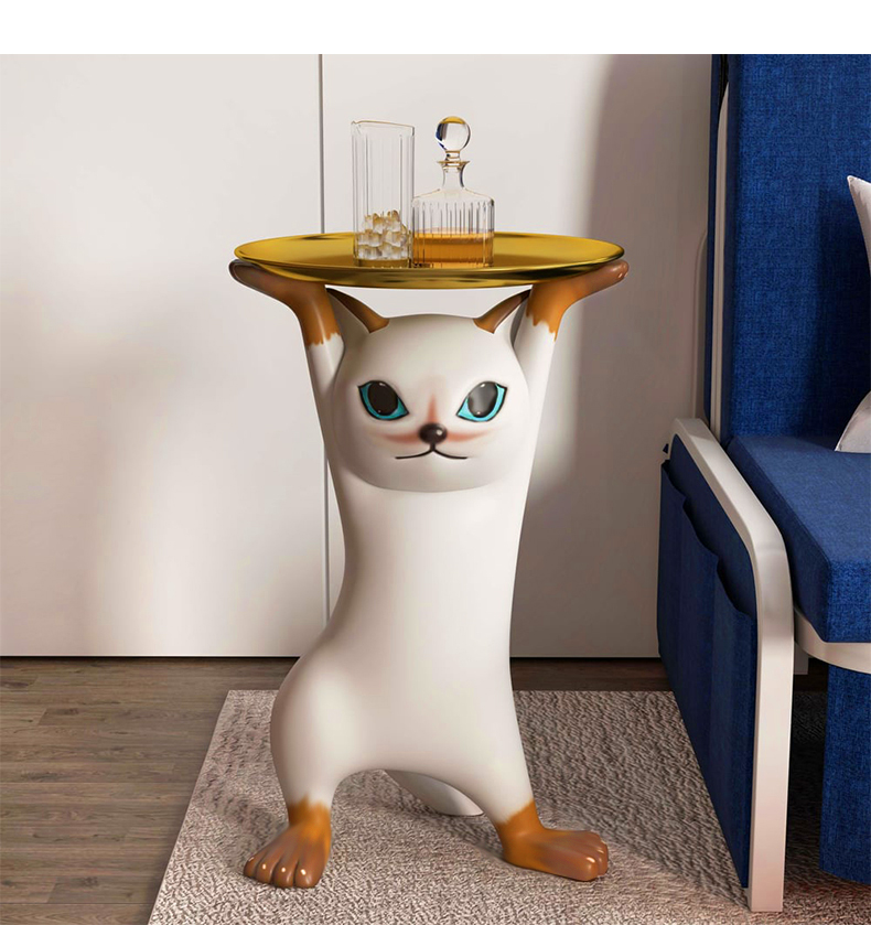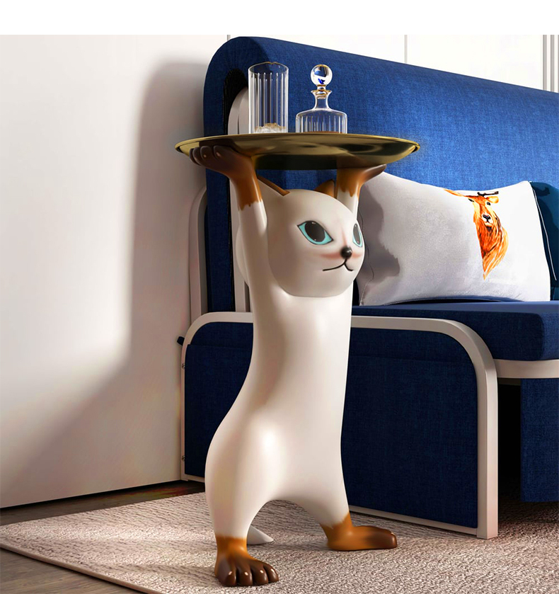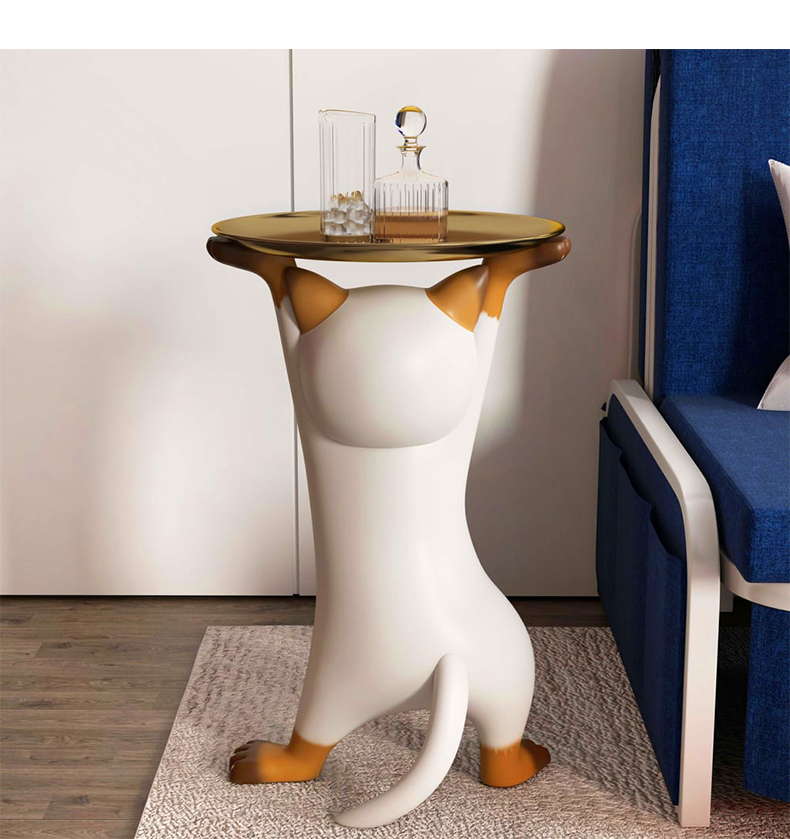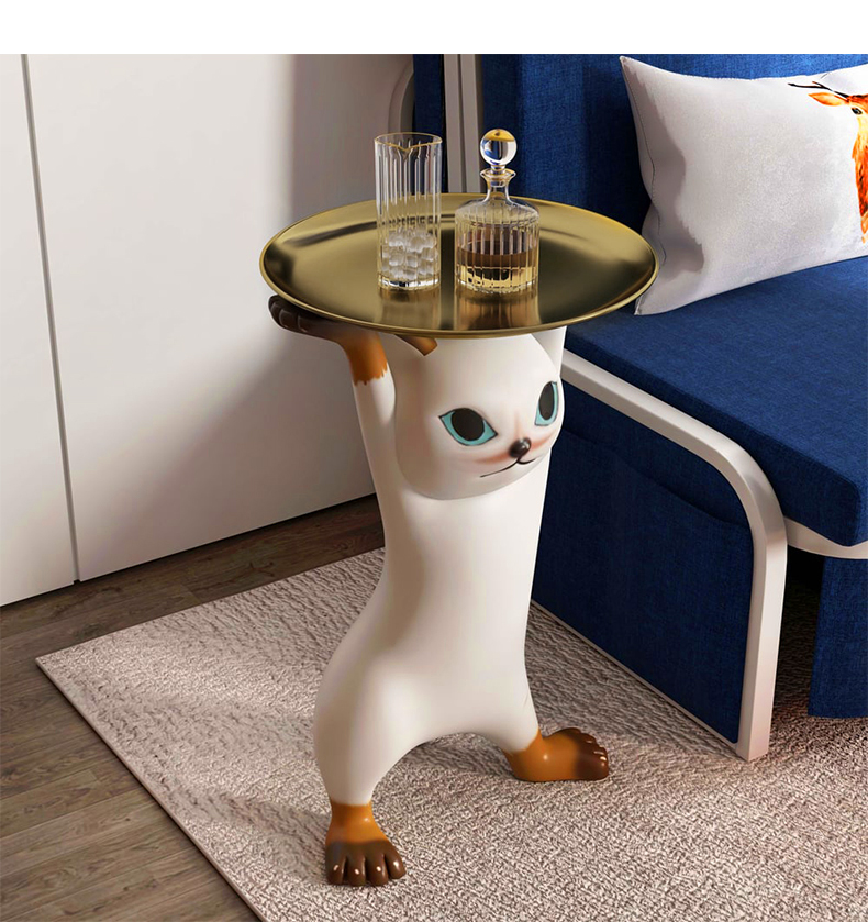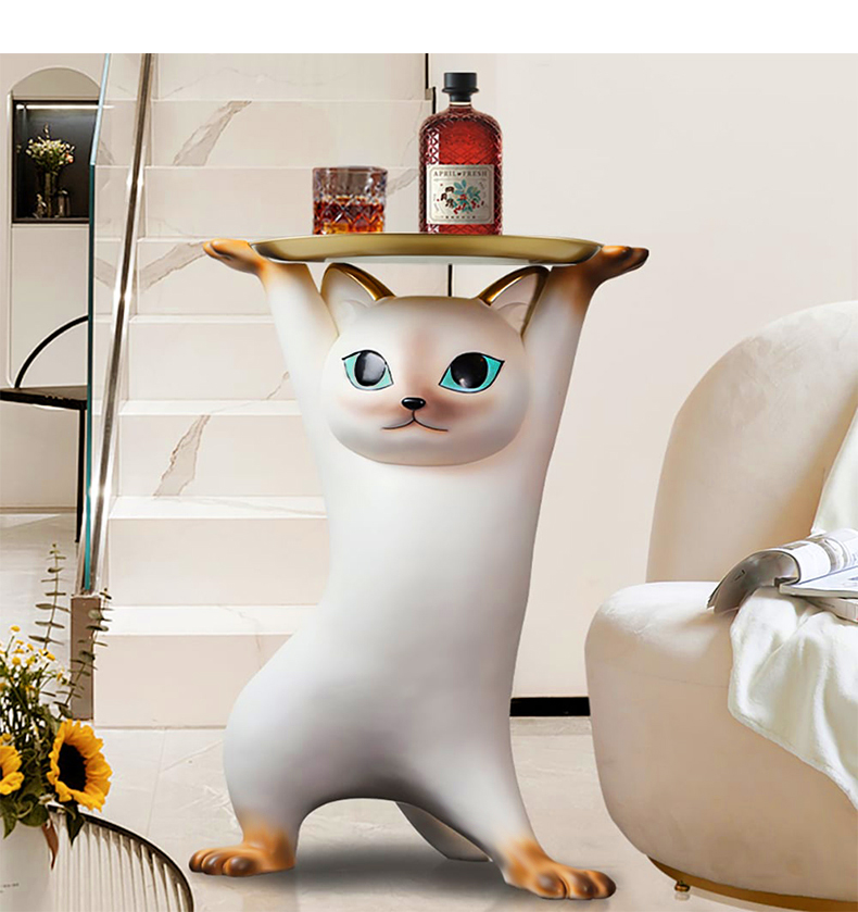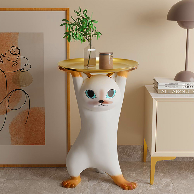 - 【ユニークな猫デザイン】:このサイドテーブルは、猫が両手を上げて支えているような形状が特徴です。リビングやベッドサイドに置くことで、空間にポップなアクセントを加えます。猫好きにはたまらないデザインで、インテリアとしても楽しめます。