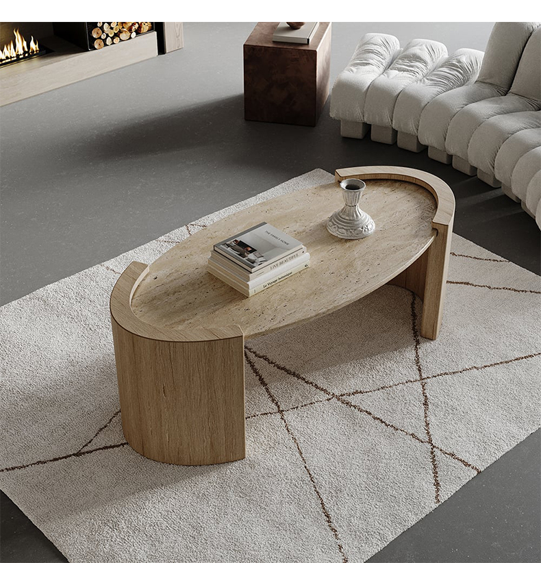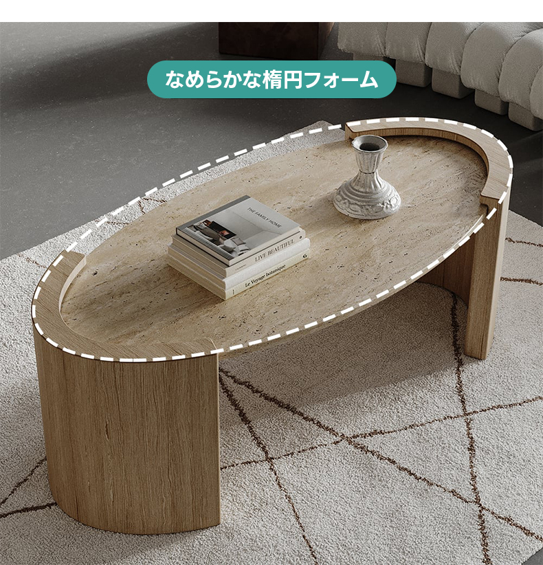 - 【魅力的なデザインと機能性】アーチレッグオーバルテーブルは、トラバーチンの天板と合成木材の脚部を組み合わせたデザインで、リビングルームに洗練された雰囲気をもたらします。楕円形のフォルムが空間に柔らかさと温もりを演出し、どんなインテリアにも調和します。