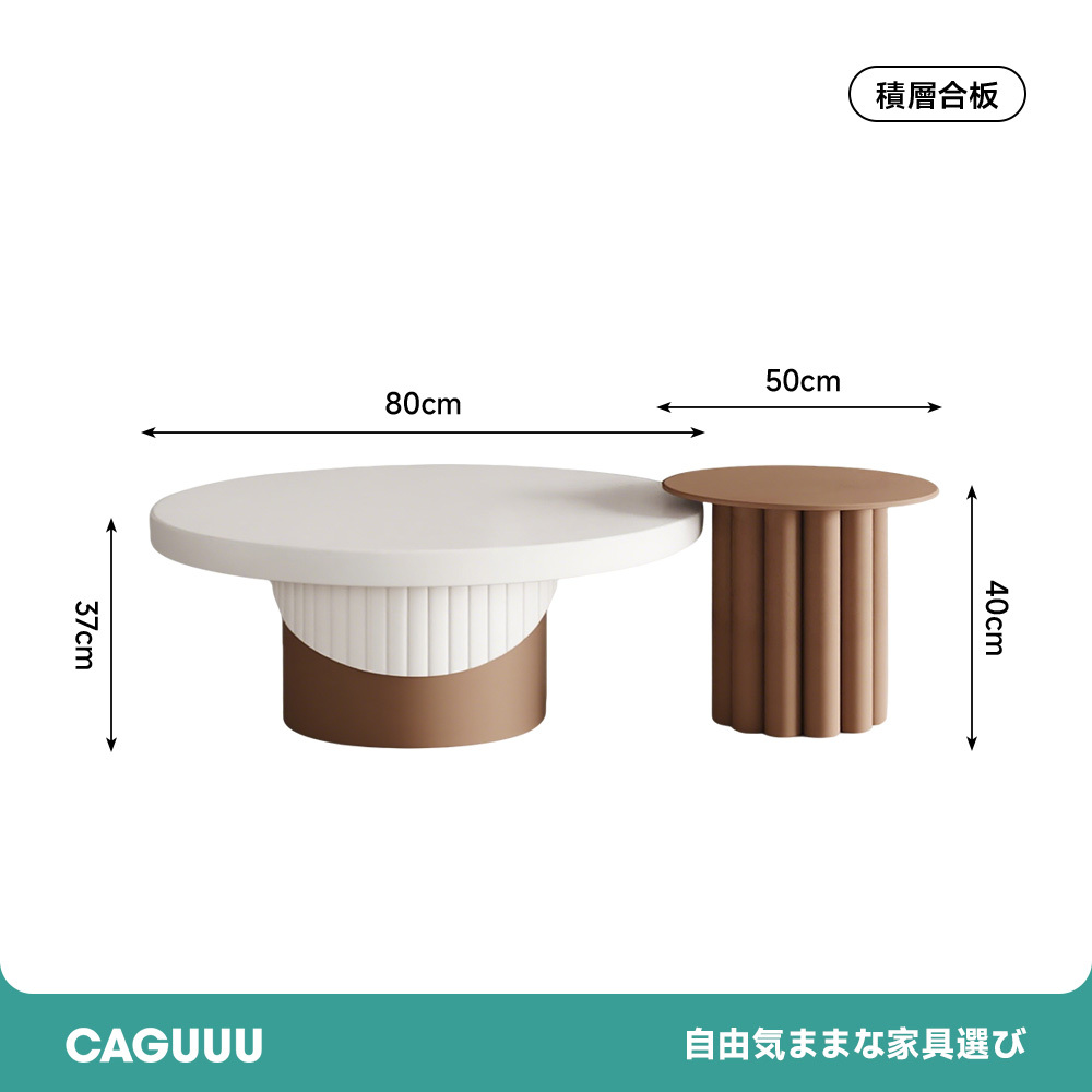 - 【多用途なテーブルセット】:ツインムードラインテーブルは、大小2つのテーブルで構成され、リビングに温かみをもたらします。大テーブルは幅80cm、小テーブルは幅50cmで、どちらも円形のフォルムが特徴です。重ねて使うことも、別々に配置することも可能で、シーンに合わせて柔軟に活躍します。