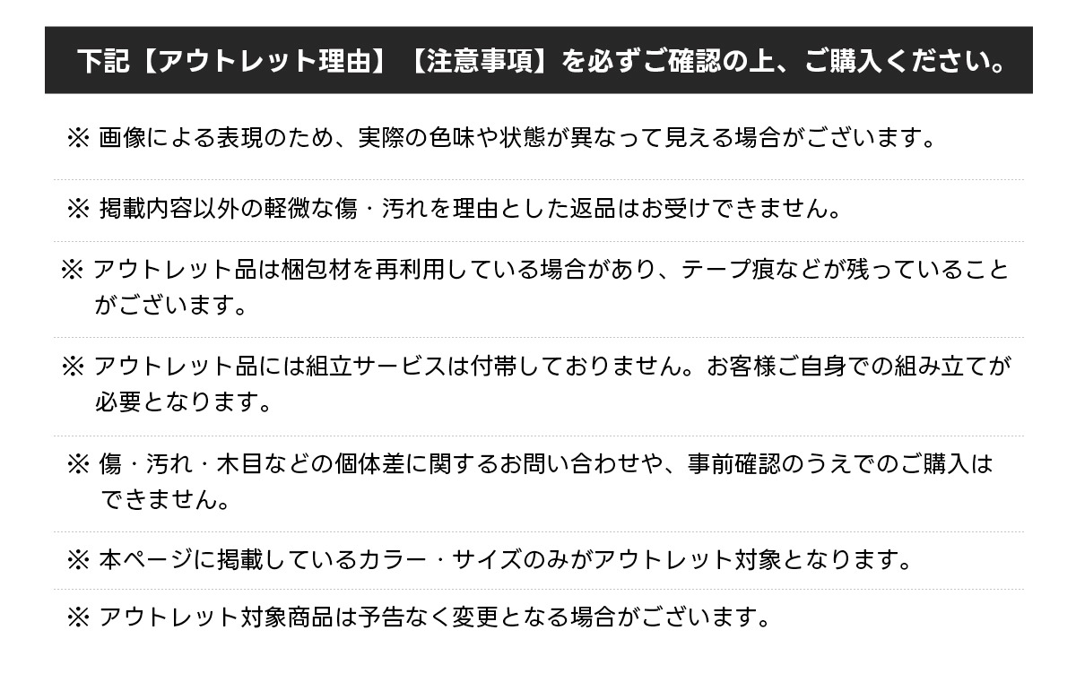 アウトレット商品につき、ご購入後の返品・交換はお受けできません。あらかじめご了承ください。