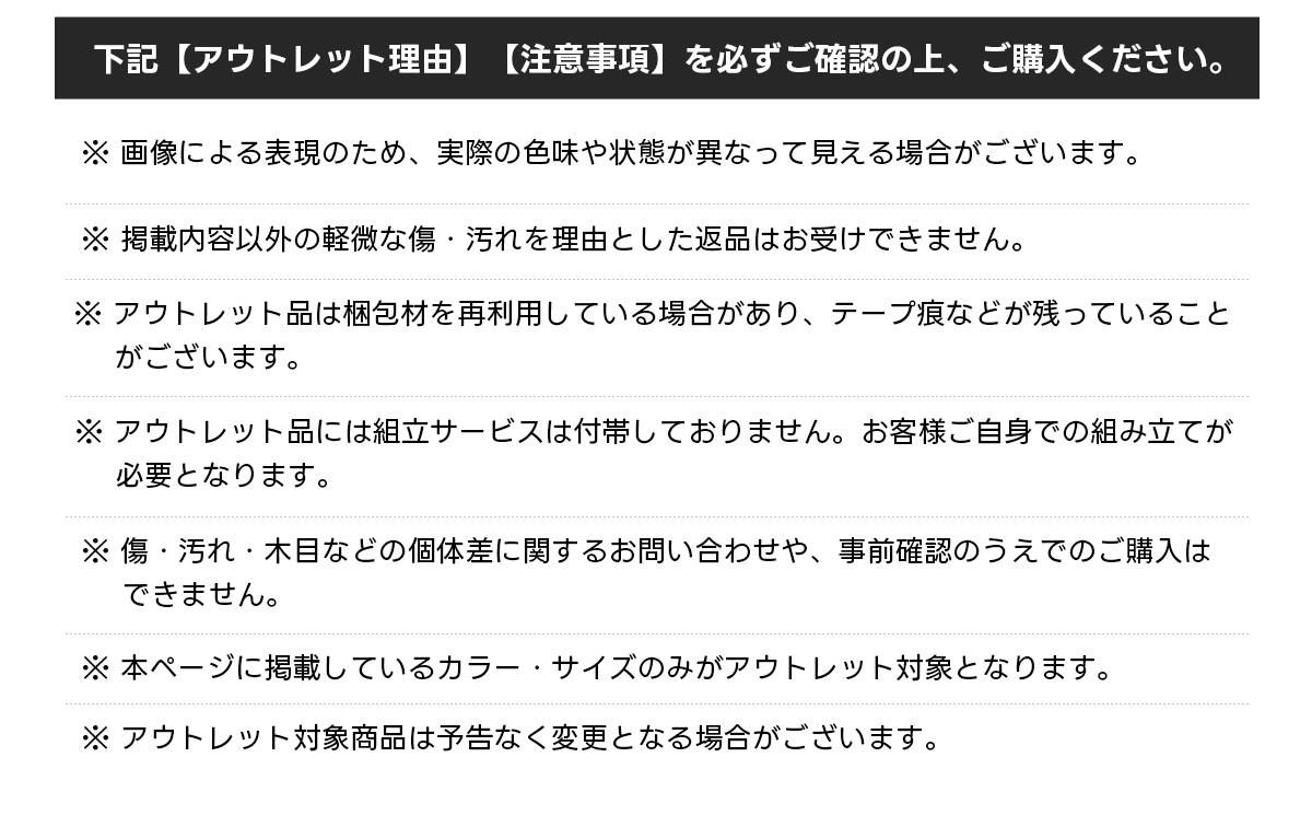 アウトレット商品につき、ご購入後の返品・交換はお受けできません。あらかじめご了承ください。