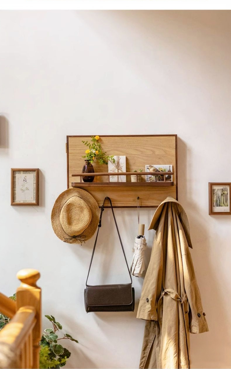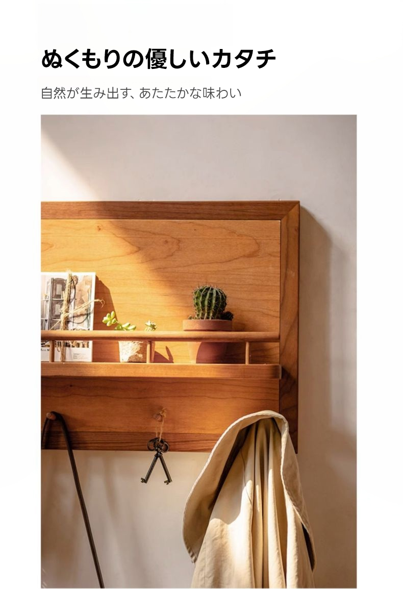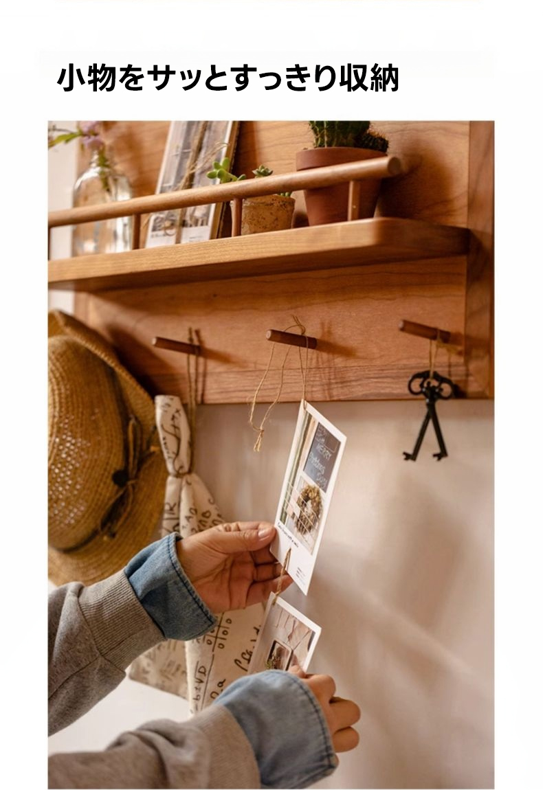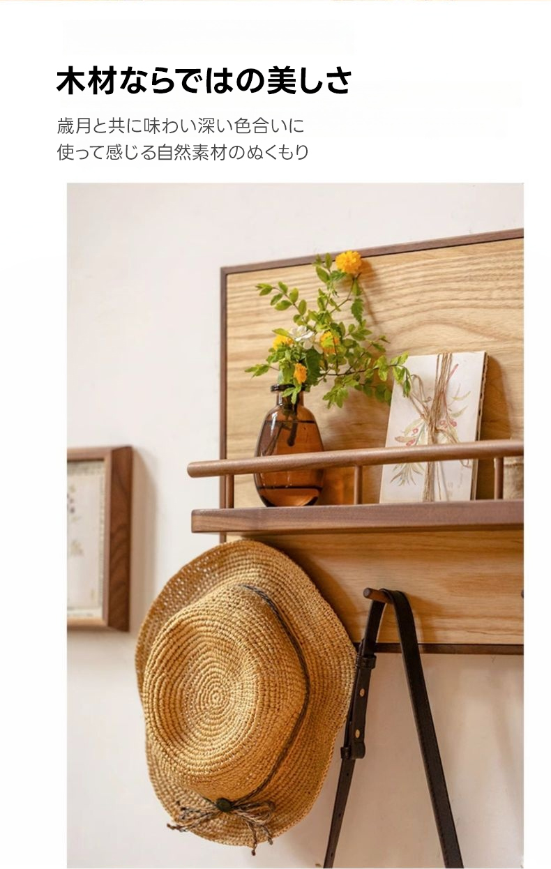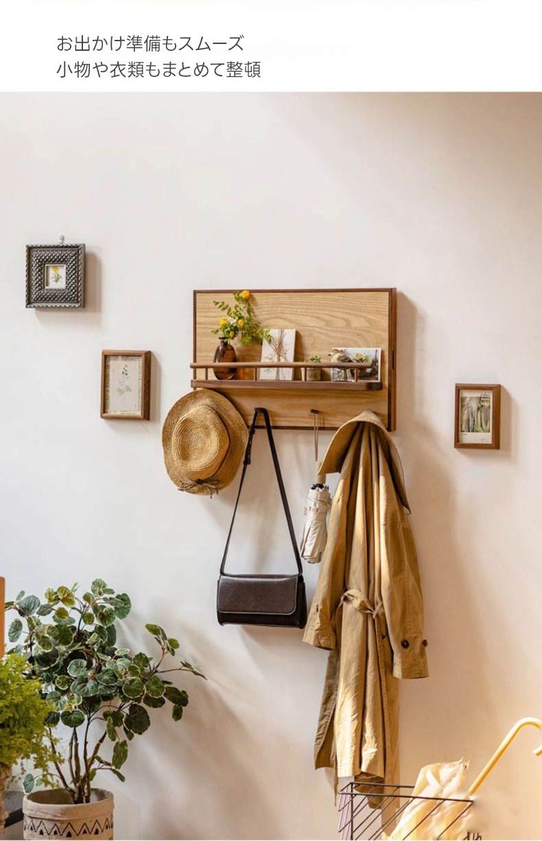 - 【多用途の収納スペース】ナチュラルウッドウォールラックは、玄関やエントランスに最適な多用途の収納スペースを提供します。棚板とフックが付いており、鍵や帽子、コートなどを便利に整理できます。壁掛けタイプでスペースを有効活用し、すっきりとした空間を実現します。