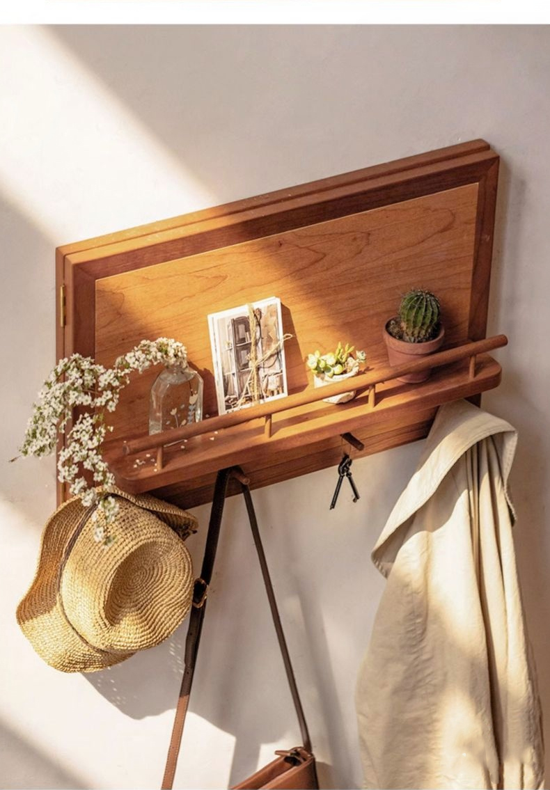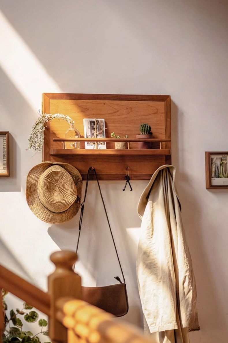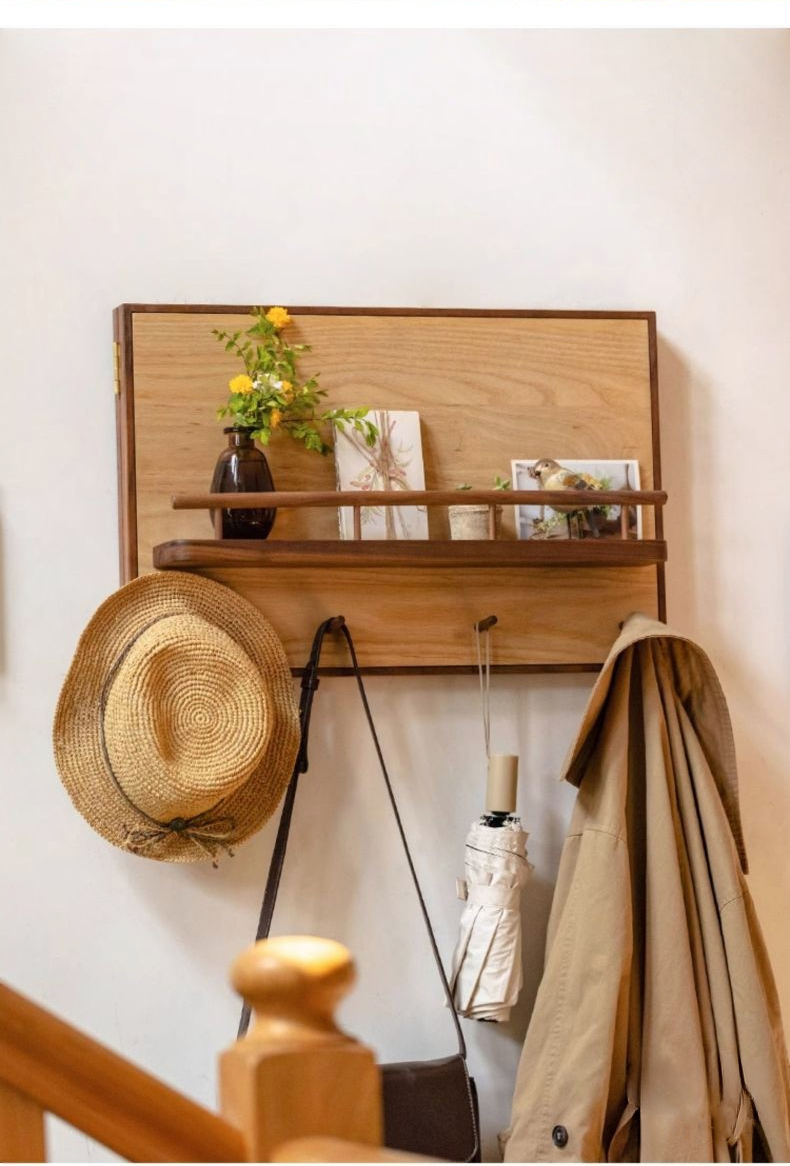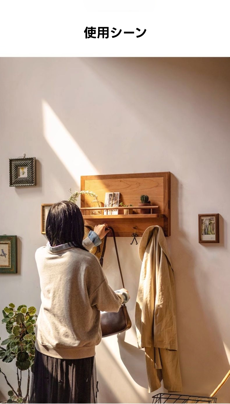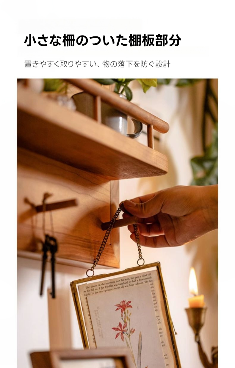 - 【多用途の収納スペース】ナチュラルウッドウォールラックは、玄関やエントランスに最適な多用途の収納スペースを提供します。棚板とフックが付いており、鍵や帽子、コートなどを便利に整理できます。壁掛けタイプでスペースを有効活用し、すっきりとした空間を実現します。