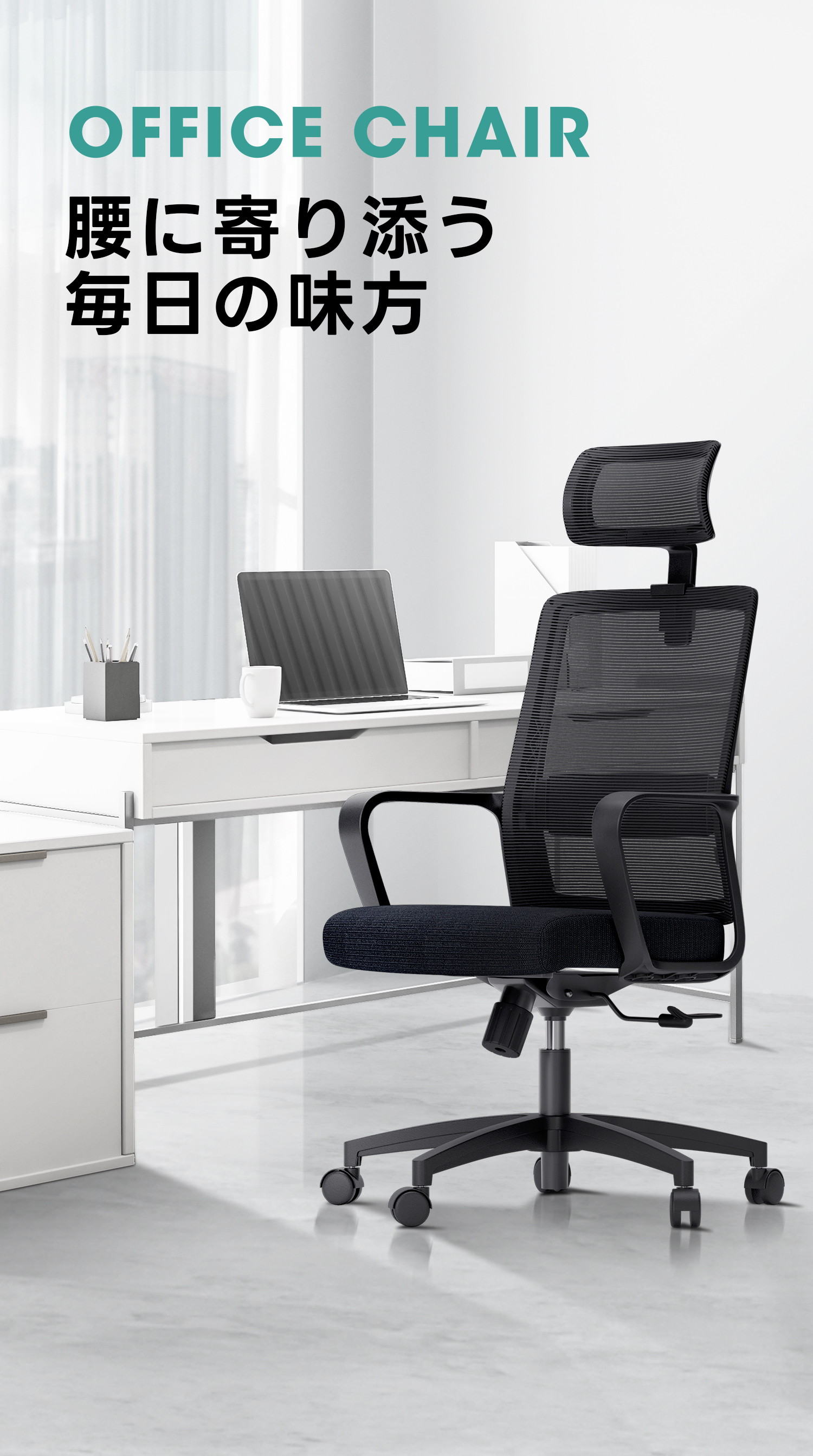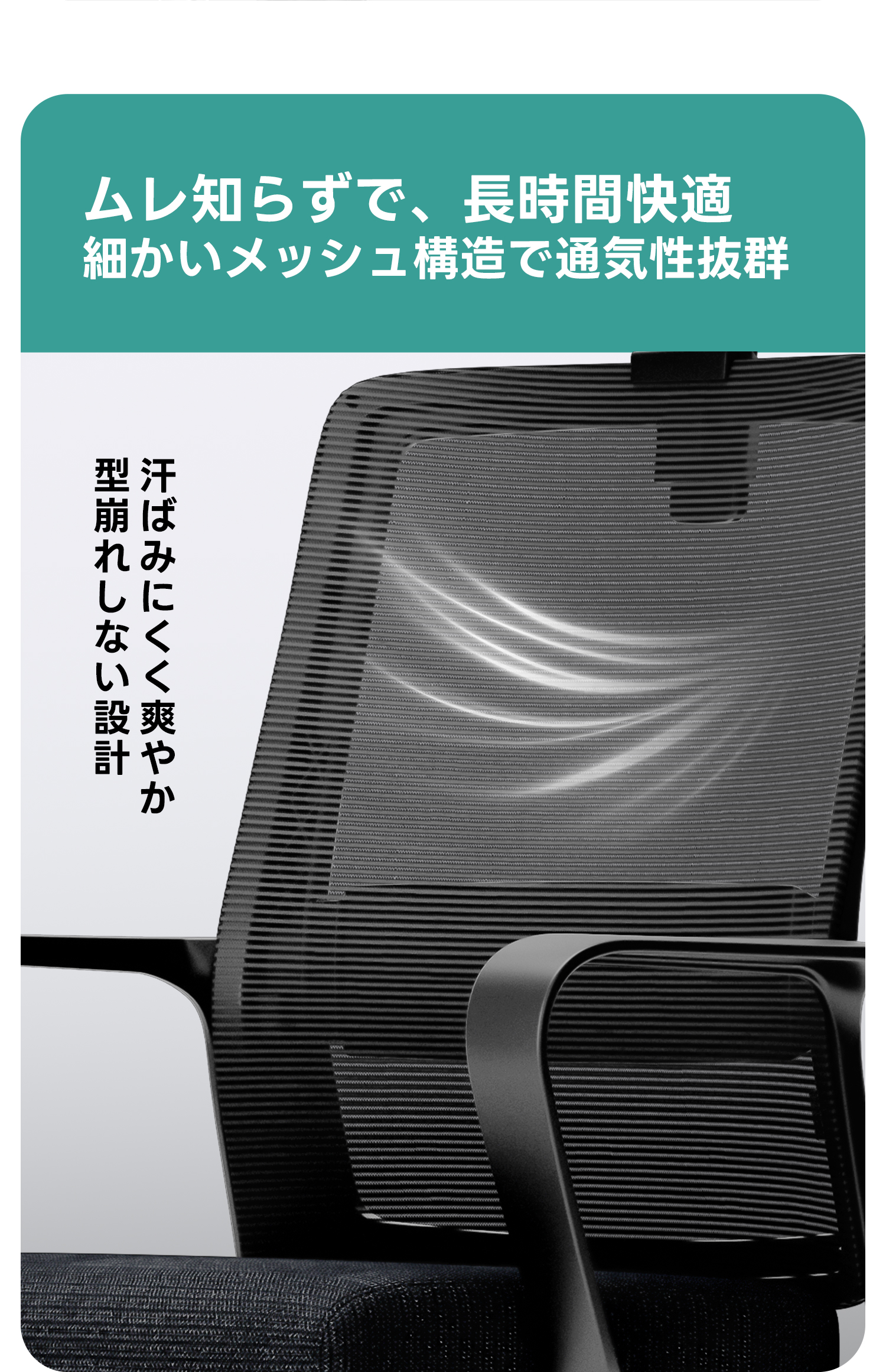 - 【高品質な素材とデザイン】ブラックのポリエステル素材を使用し、高級感と耐久性を兼ね備えています。メッシュ素材の背もたれは通気性に優れ、長時間の使用でもムレにくい設計です。