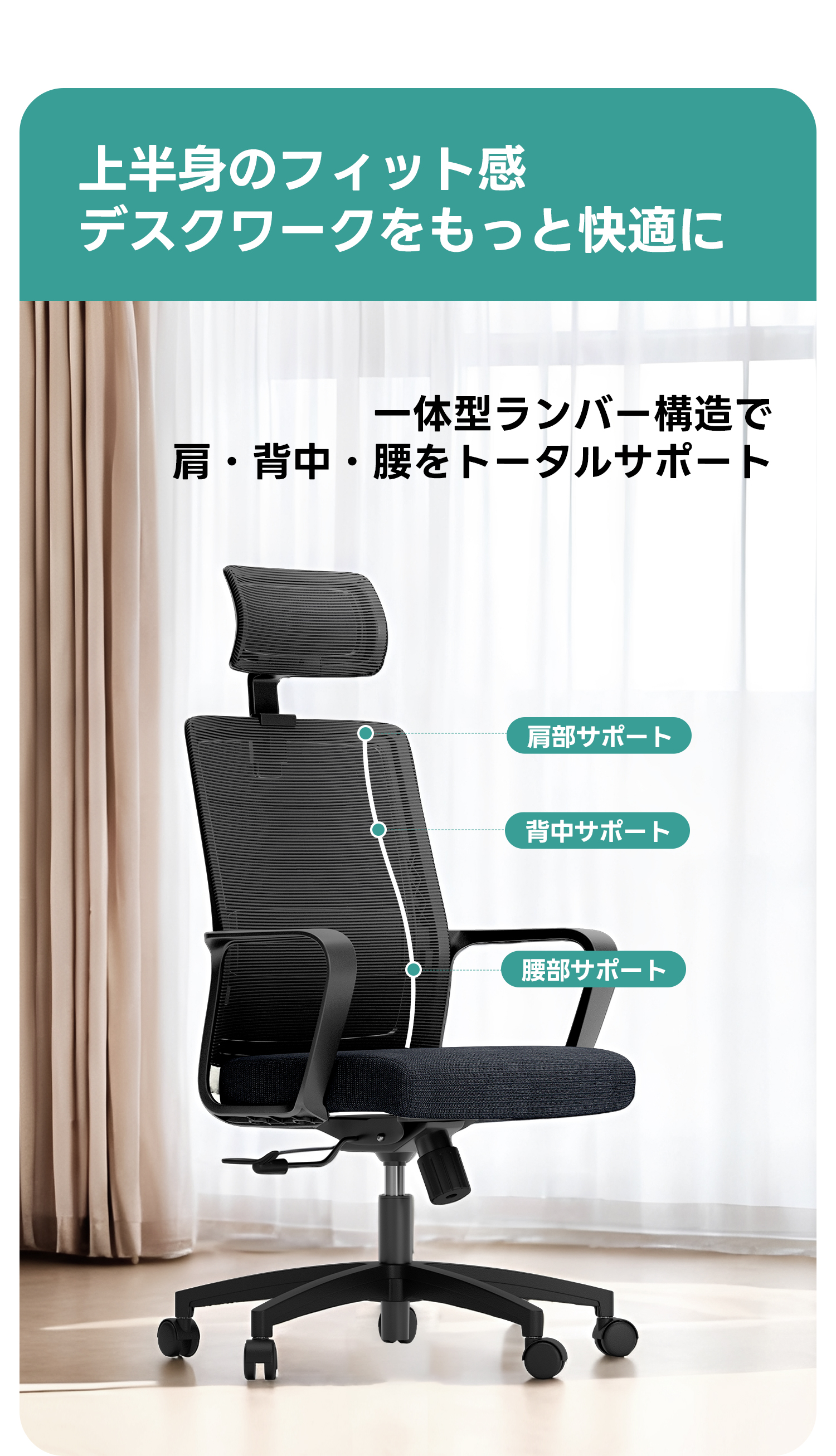 - 【人間工学に基づいたデザイン】ネクサスオフィスチェアは、背中に沿うカーブと一体型ランバー構造により、肩、背中、腰をトータルでサポートします。自然な姿勢を保ちながら、長時間のデスクワークでも快適に過ごせます。