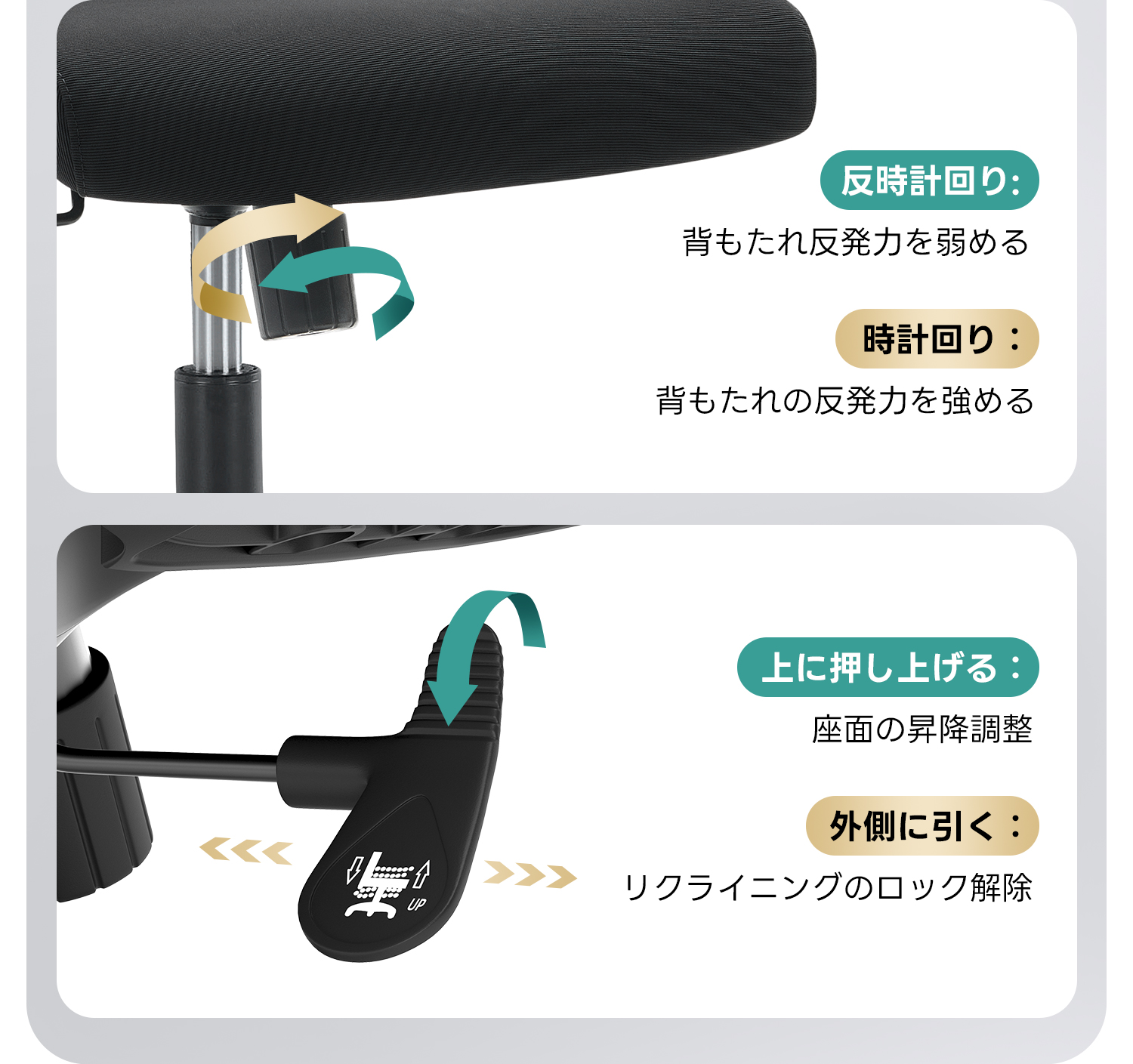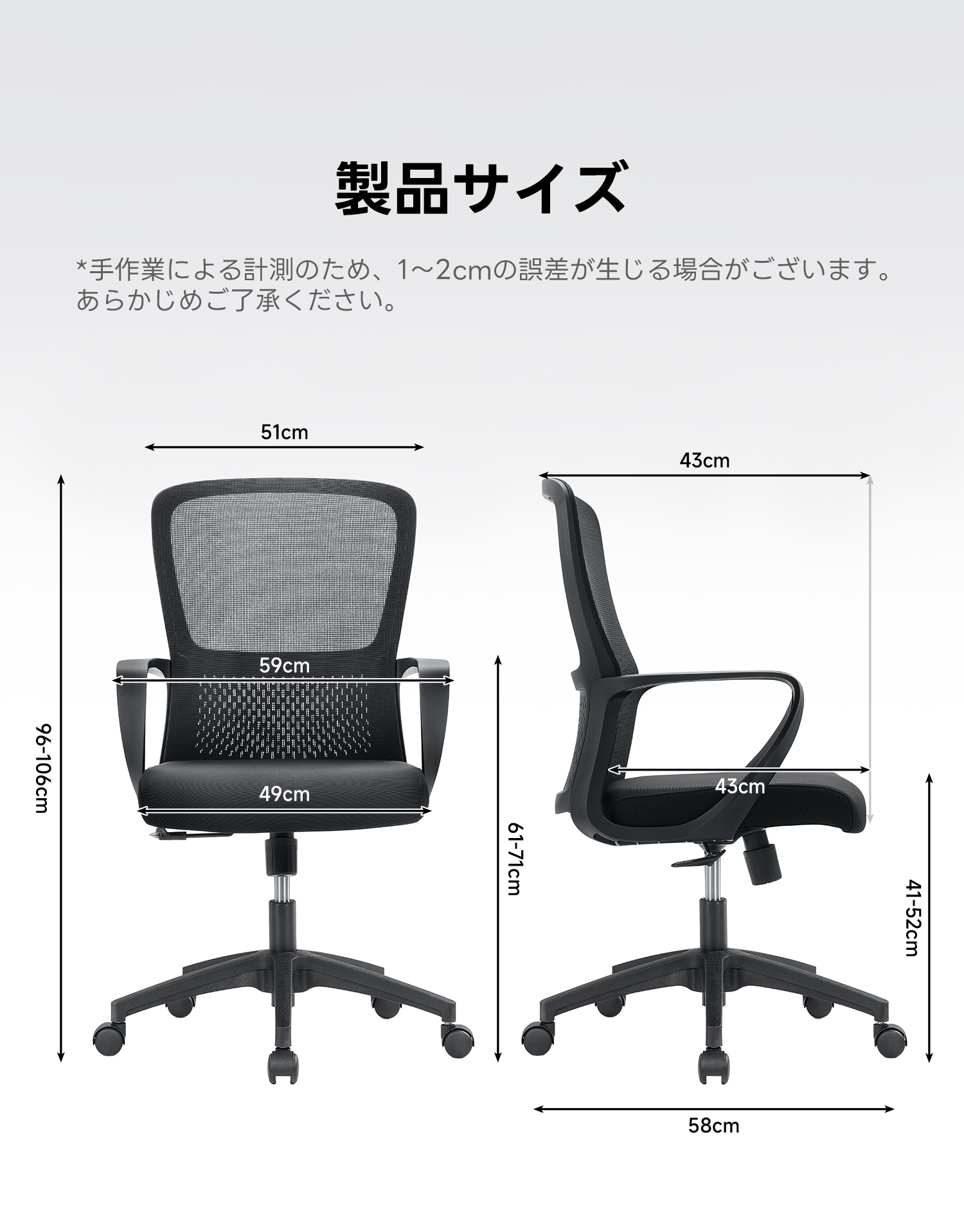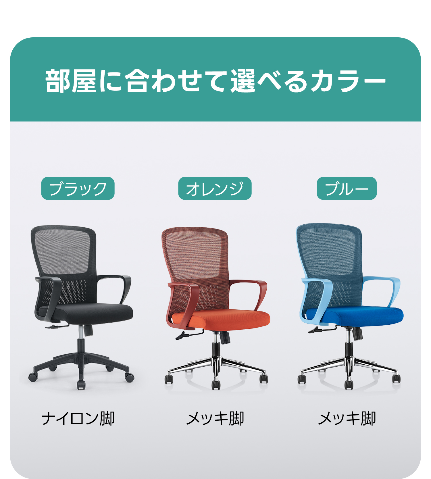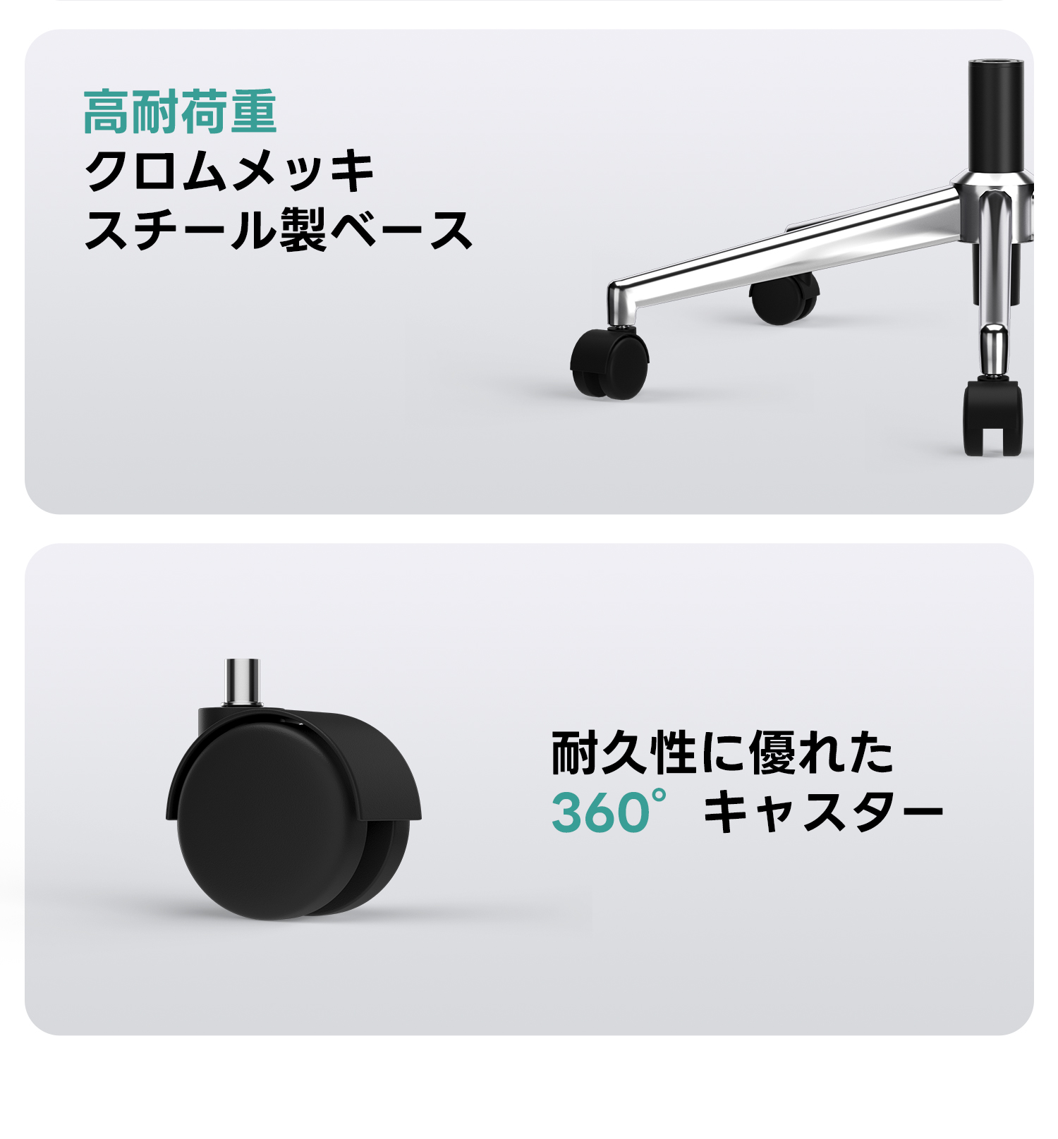 - 【優れた素材とデザイン】:通気性に優れたメッシュ素材を使用し、蒸れを防ぎます。高耐荷重のナイロン製ベースとクロムメッキのスチール製ベースで、耐久性と安定性を兼ね備えています。