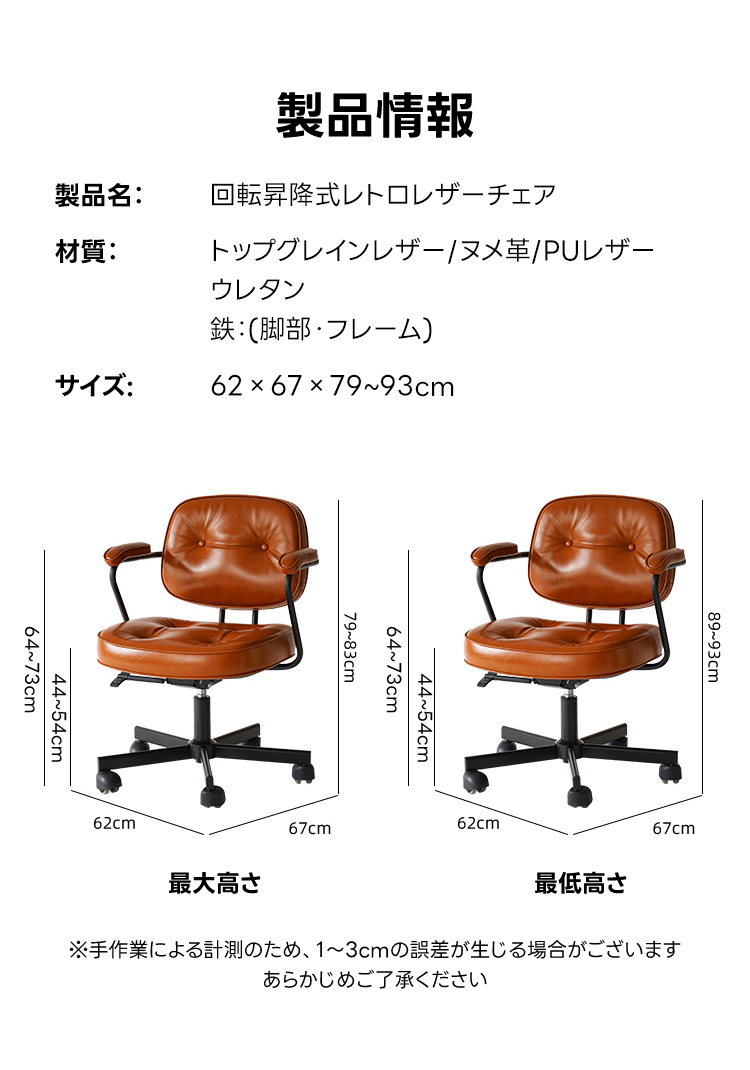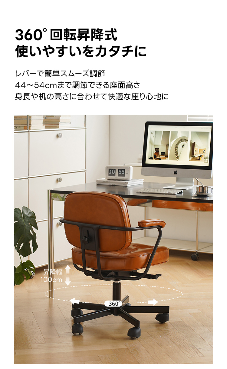 回転昇降式レトロレザーチェア