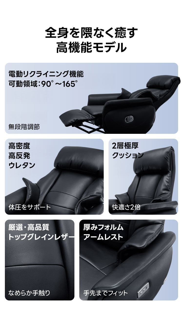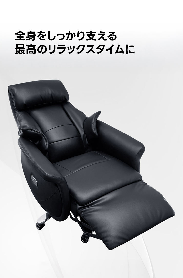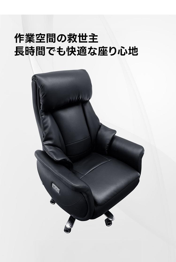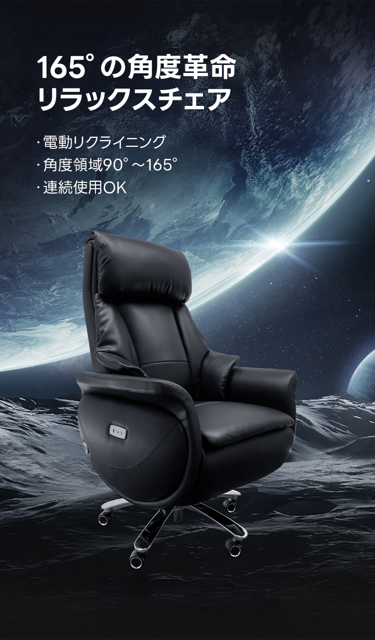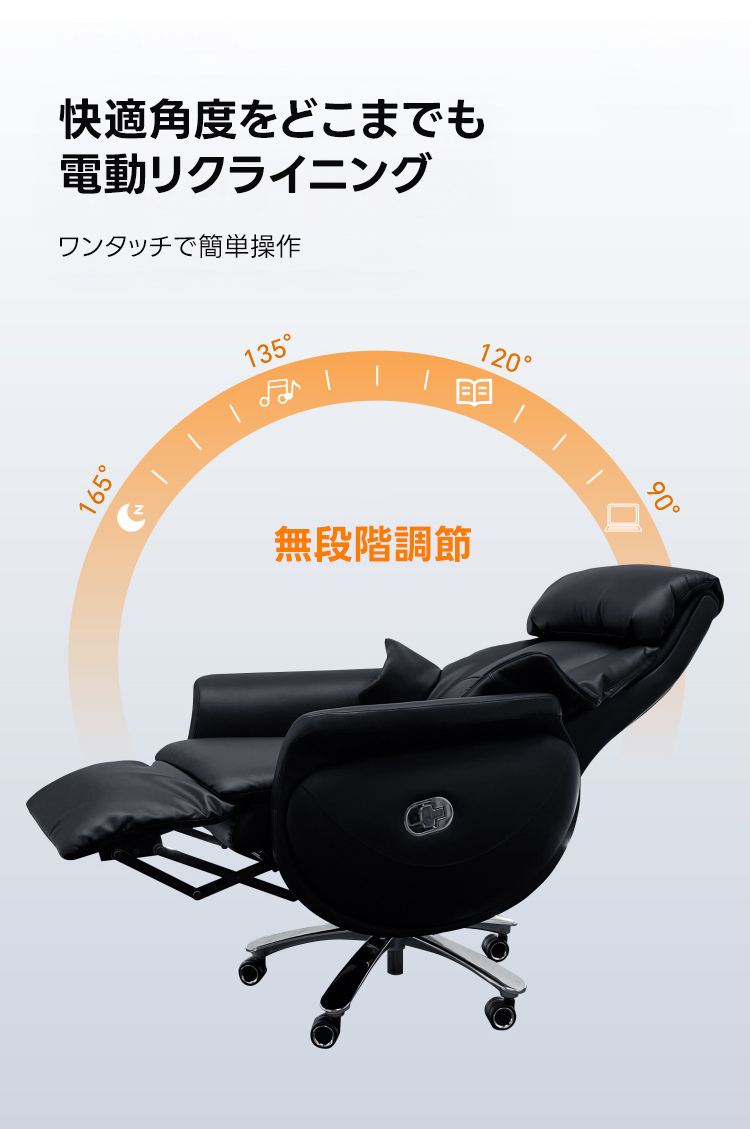 - 【電動リクライニング機能で快適な座り心地】電動リクライニング機能により、90°から165°までの無段階調節が可能です。ワンタッチで簡単に操作でき、作業中の集中からリラックスタイムまで、あらゆるシーンに対応します。