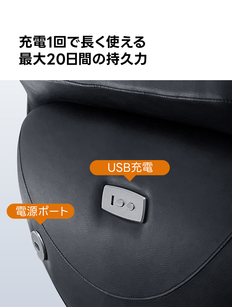 - 【快適な使用体験】高密度ウレタンが使用されており、長時間座っても疲れにくい設計です。頑丈な金属フレームと5本脚部により、安定した耐久性を実現しています。最大20日間使用可能なリチウムバッテリーを搭載し、USB充電も可能です。