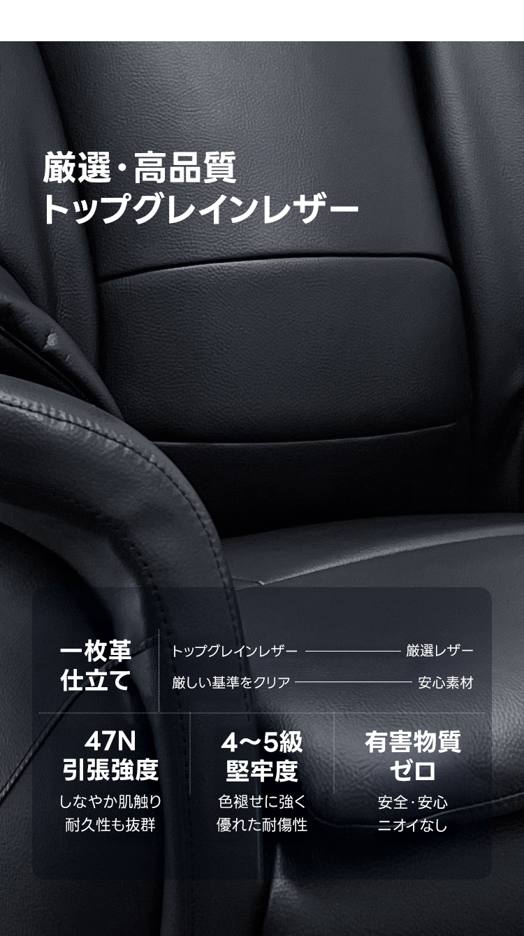- 【高品質素材とデザイン】厳選されたトップグレインレザーを使用しており、しなやかで耐久性に優れた素材です。肌触りも非常に滑らかで、長時間の使用でも快適です。贅沢な2層構造のクッションは、体圧をしっかりとサポートし、快適さを倍増させます。